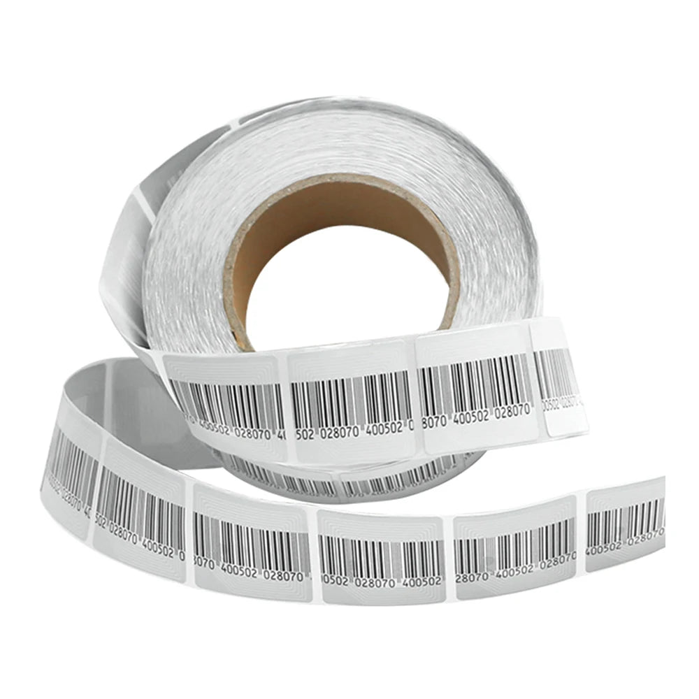 1000 Anti-Theft Security Labels 1.5"x1.5" 8.2MHz Fake Barcode, White Checkpoint Compatible