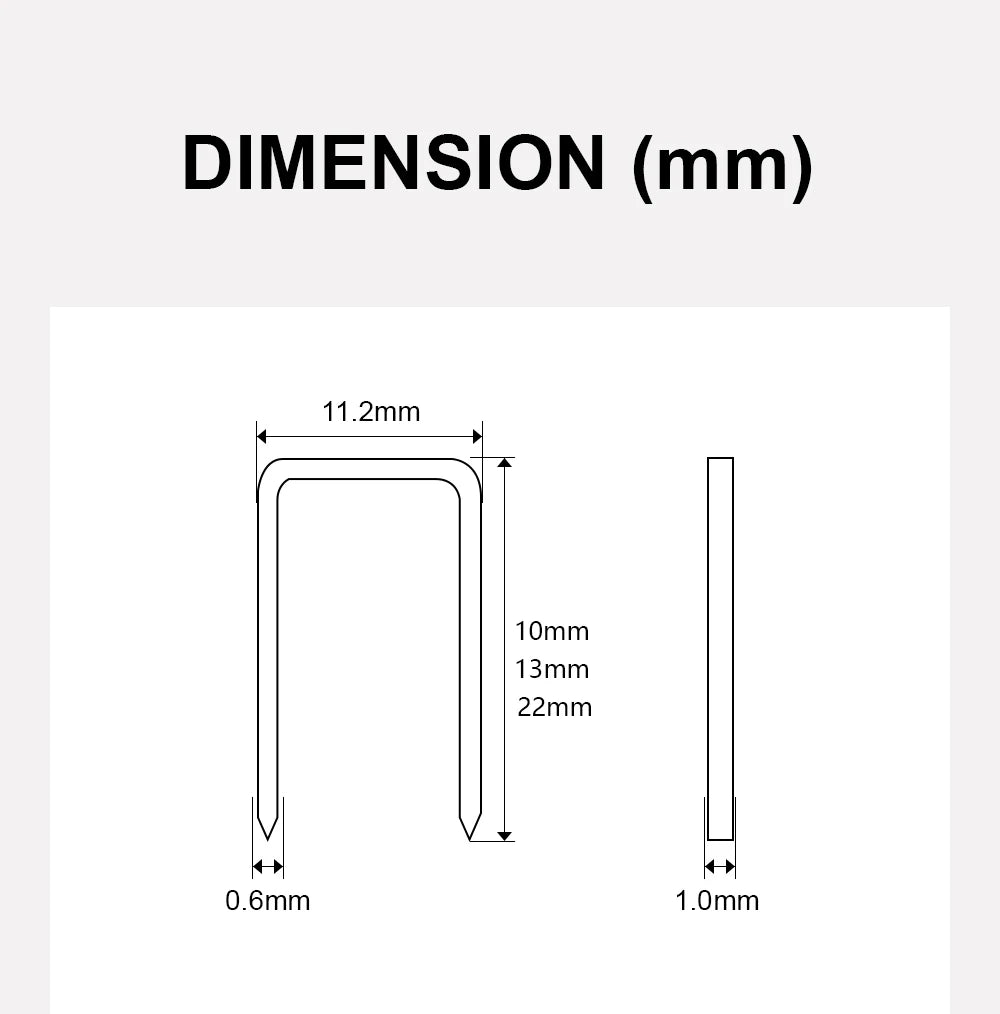 1000pcs 20ga Crown Staples 10-22mm U-Shaped Nails for Pneumatic Upholstery Staple Gun