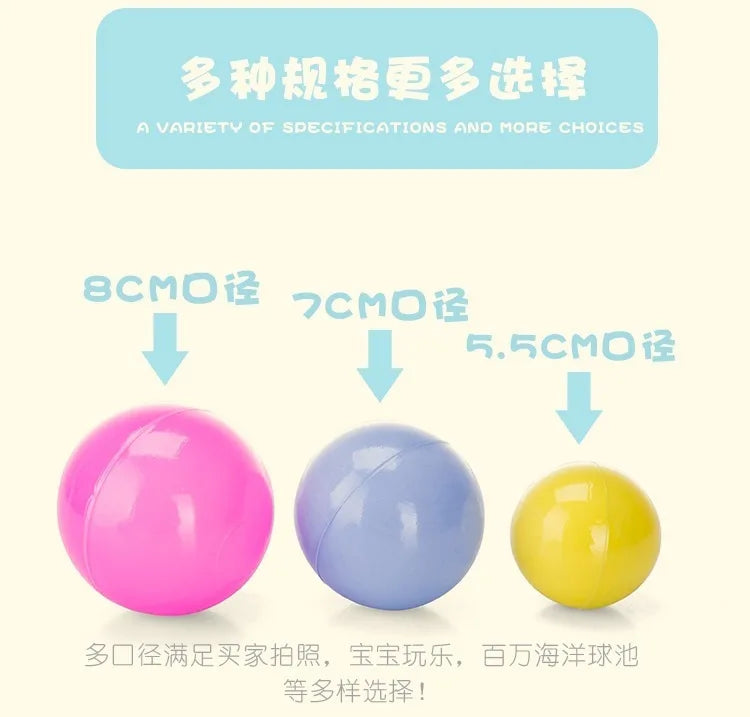 Elevate playtime with this vibrant ball pit set, ideal for exciting indoor and outdoor adventures. Crafted from high-quality, non-toxic ABS plastic, these colorful balls ensure endless entertainment and peace of mind for parents. Suitable for children of all ages, they are perfect for ball pits and play tents. The soft, durable design guarantees a safe play environment, while the 5.5 cm diameter makes them easy for little hands to manage, transforming any space into a lively play zone.
