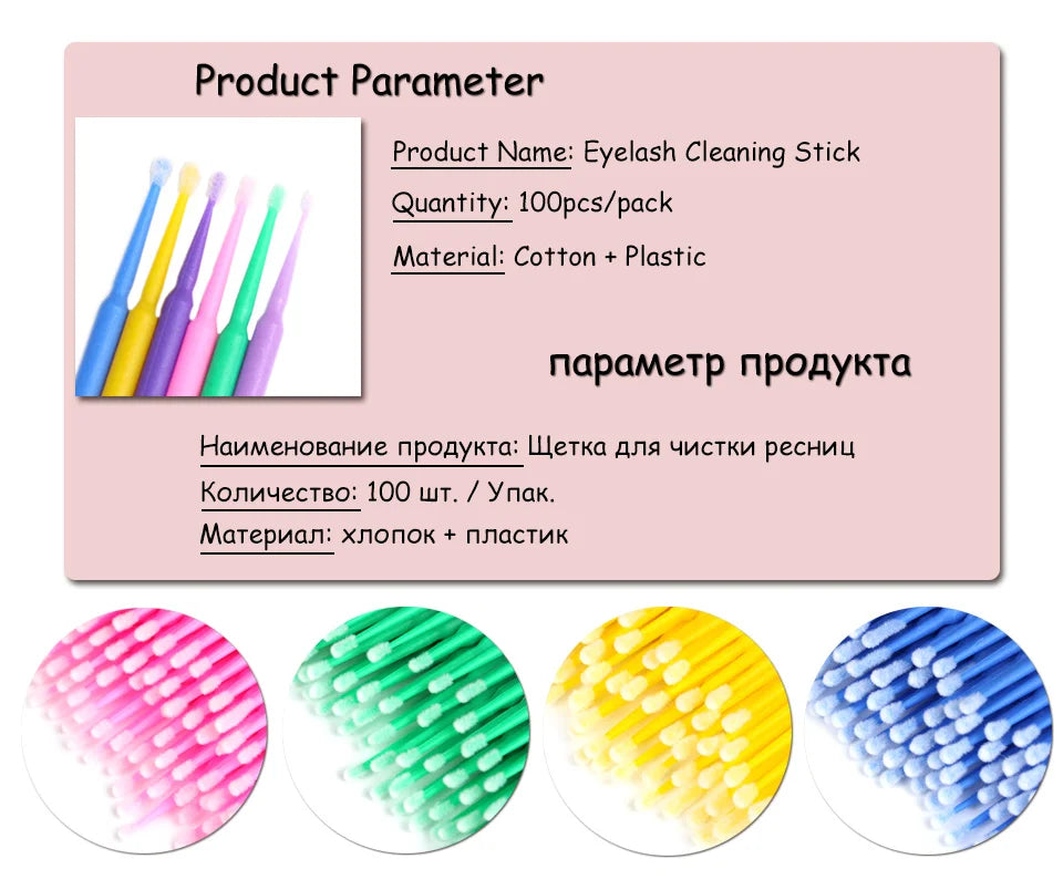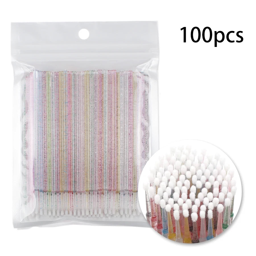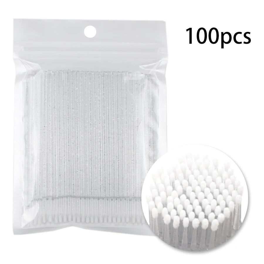100-Pack Disposable Micro Brushes for Eyelash Extensions & Makeup Application