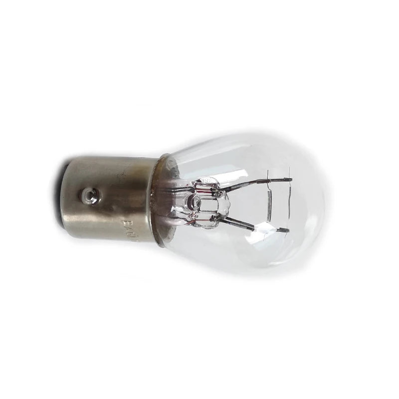 Crafted with a glass lens and durable plastic wedge with a double filament, these 12V 5W bulbs fit seamlessly into various lighting interfaces, particularly BAY15d sockets. Enhance the visibility and safety of your vehicle with these essential lighting components.