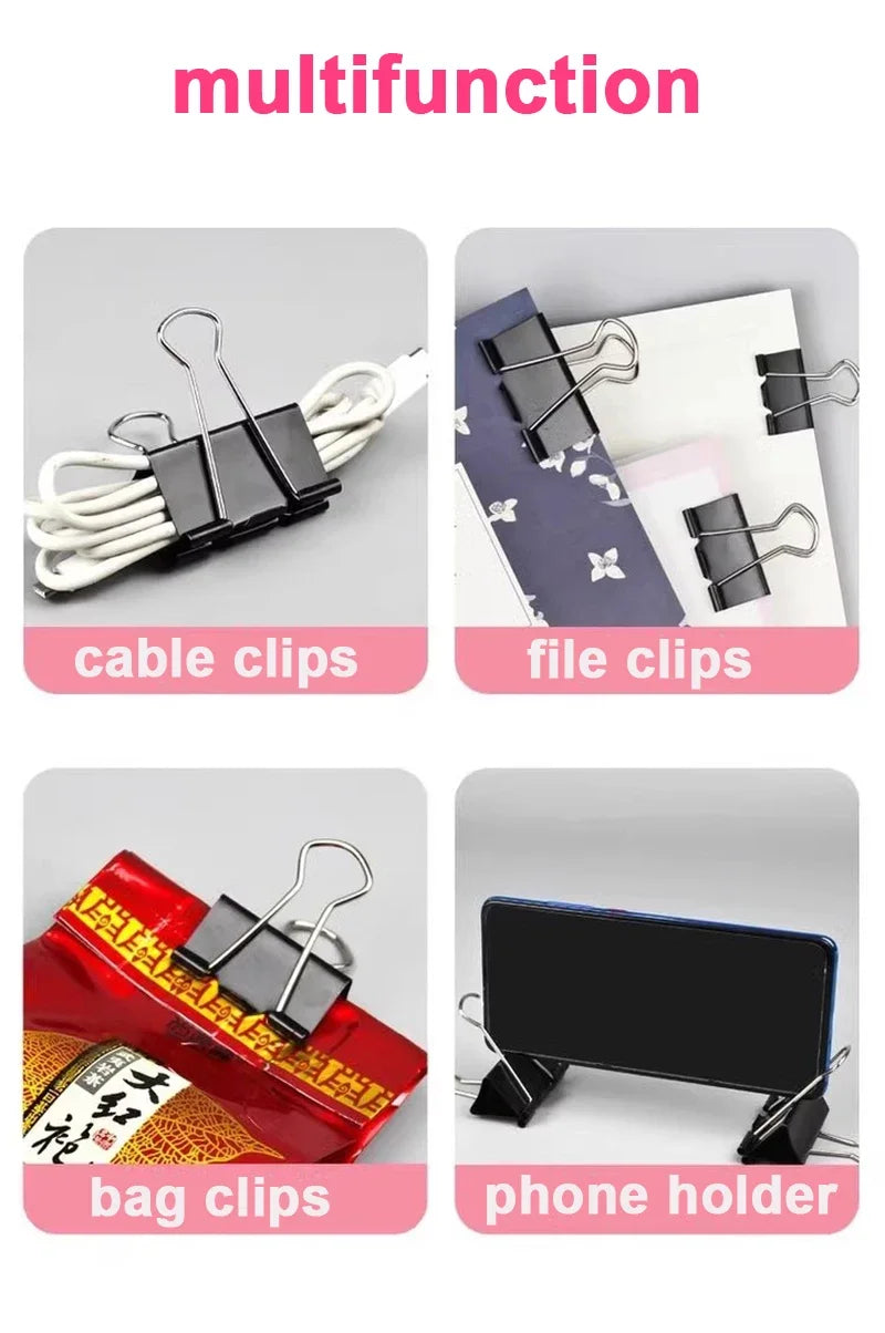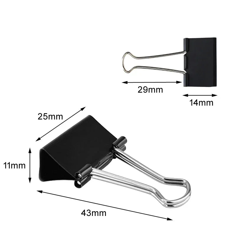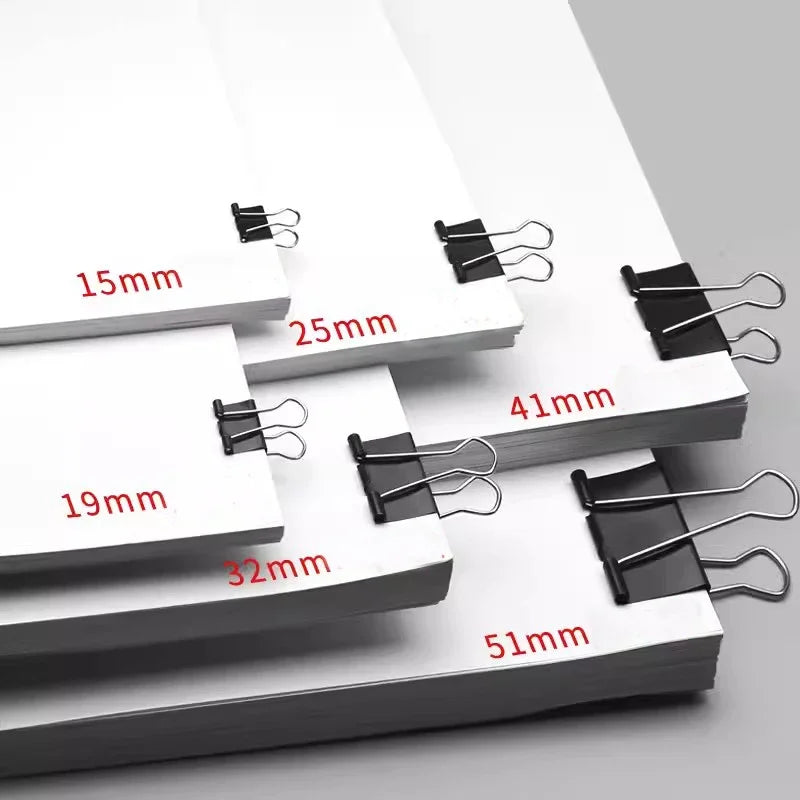 Keep your documents tidy and organized with this versatile set of metal paper clips. Perfect for both home and professional use, these clips are ideal for securing papers, receipts, letters, schoolwork, office documents, and bills. Crafted from high-quality steel, they ensure durability and reliability for all your organization needs. Available in various sizes (15mm, 19mm, 25mm, 32mm, 40mm, 51mm), these clips are a must-have for efficient paper management.
