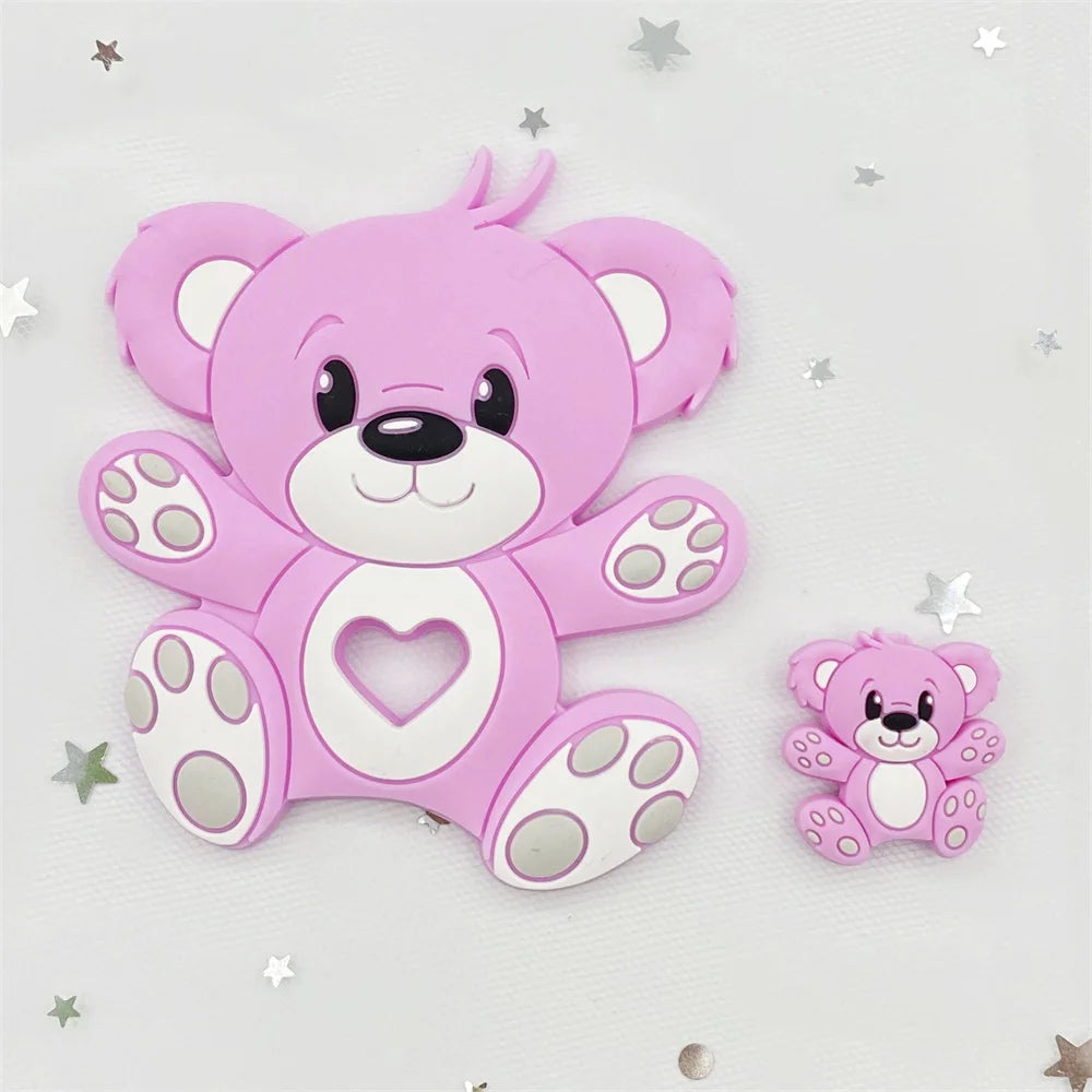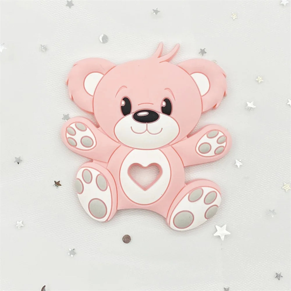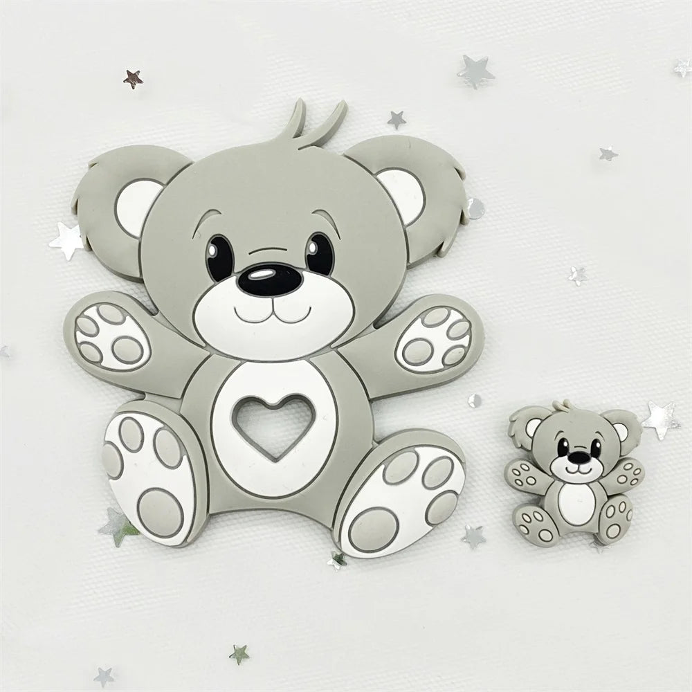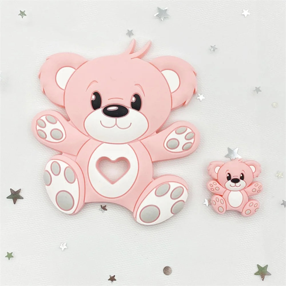 Bear Silicone Baby Teether Rodent Chewable Beads, Nursing Pendant Necklace, Baby Teething Toy