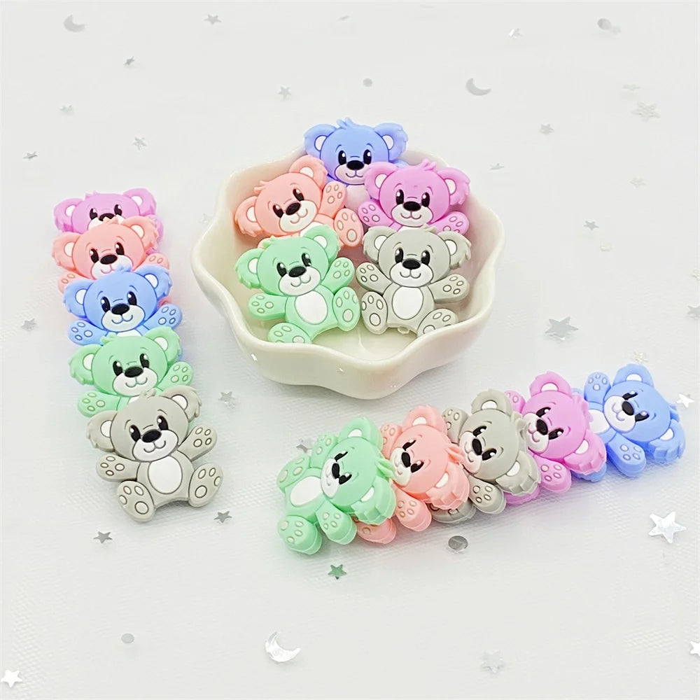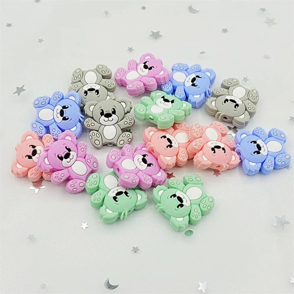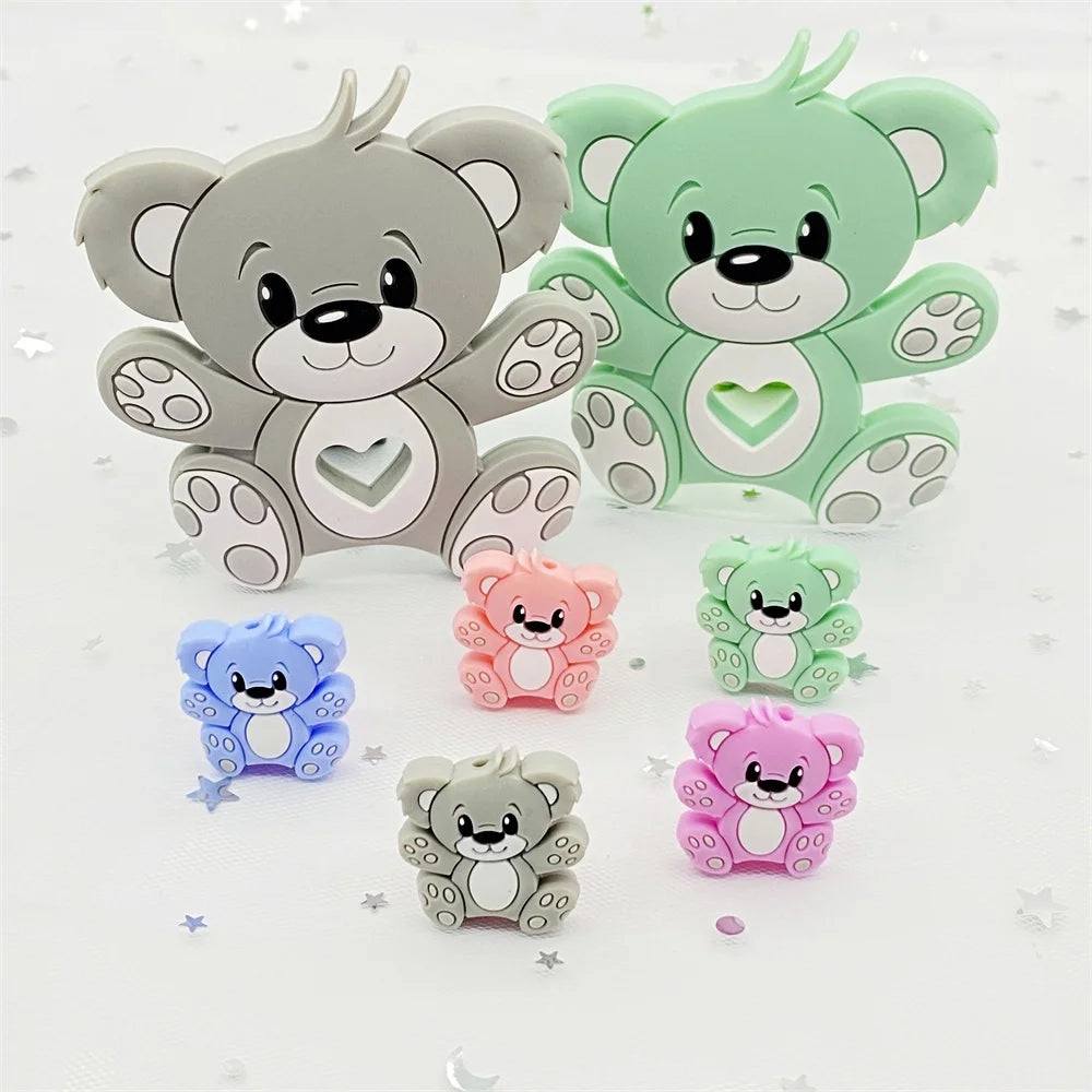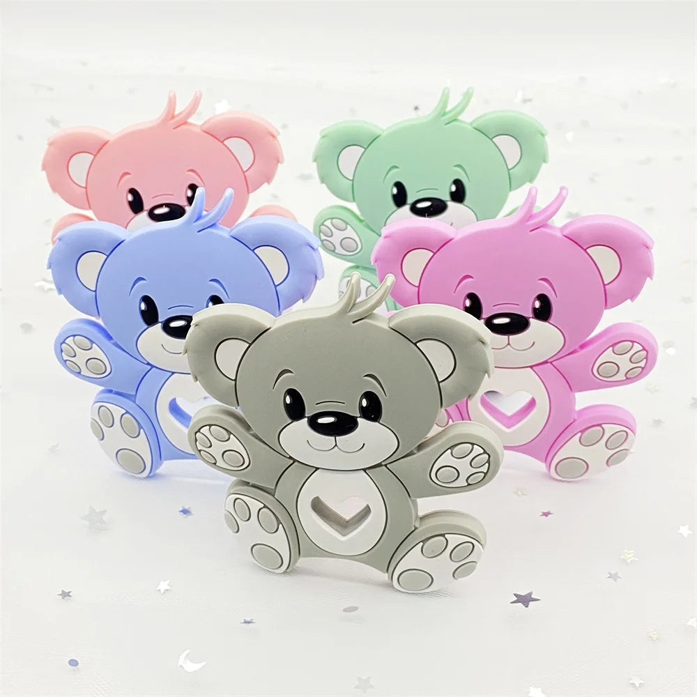 Bear Silicone Baby Teether Rodent Chewable Beads, Nursing Pendant Necklace, Baby Teething Toy