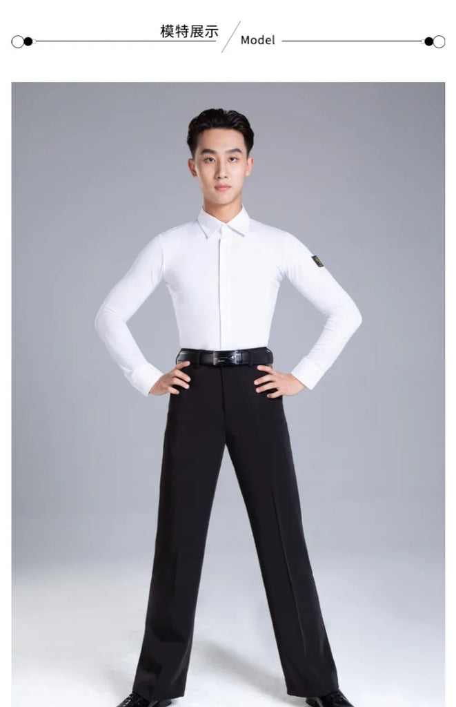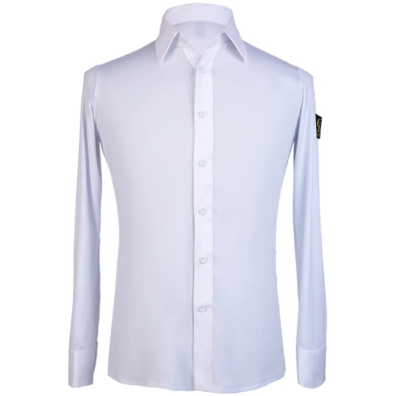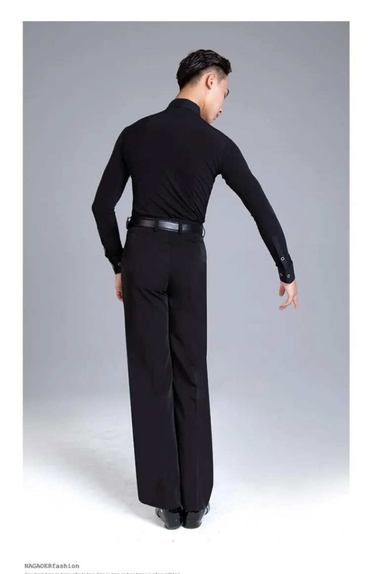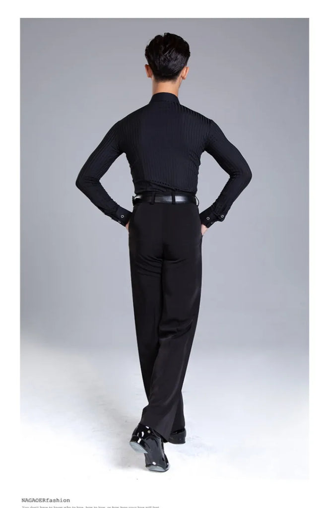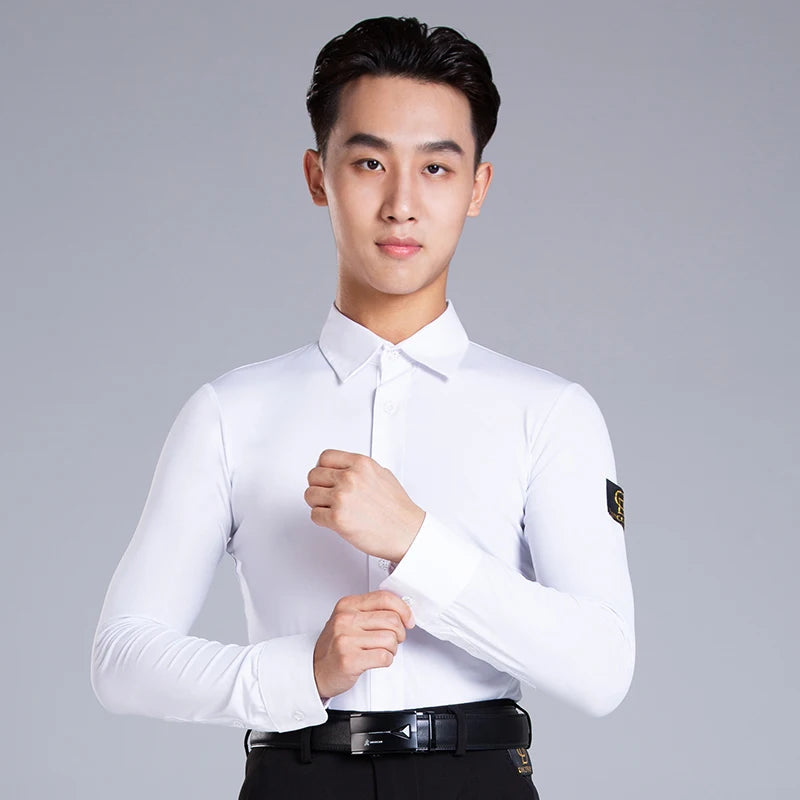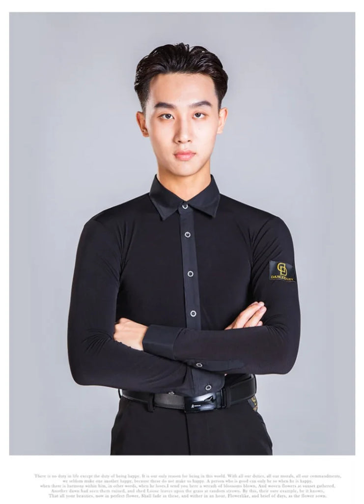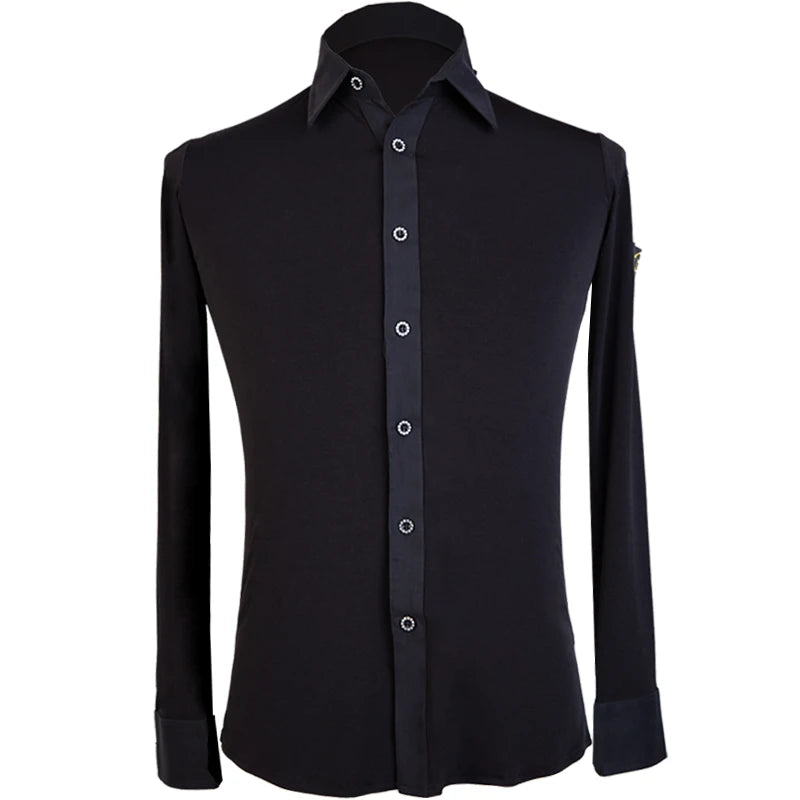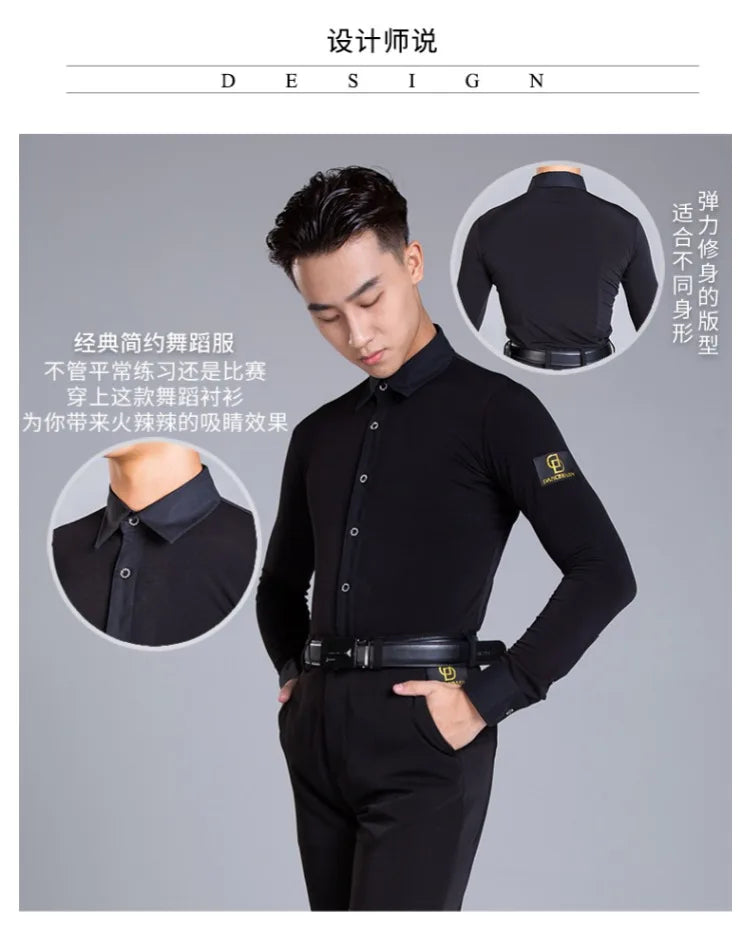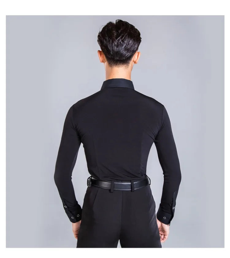 Elevate your dance performance with this sleek and stylish men's Latin dance shirt. Crafted from a high-quality blend of polyester and spandex, this shirt provides both comfort and flexibility, ensuring ease of movement on the dance floor. The long-sleeve design, made with crystal hemp fabric, adds a touch of elegance, making it perfect for performances or practice sessions. Available in sizes M, L, XL, and XXL, this shirt is designed to fit the modern dancer who values both style and functionality.