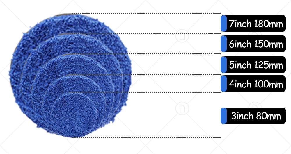 - Versatile Sizes: Available in 3-inch (80mm), 4-inch (100mm), 5-inch (125mm), 6-inch (150mm), and 7-inch (180mm) to suit different polishing needs.