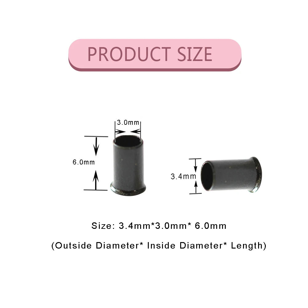 - Size: 3.4x3.0x6.0mm (Outer Diameter x Inner Diameter x Length)