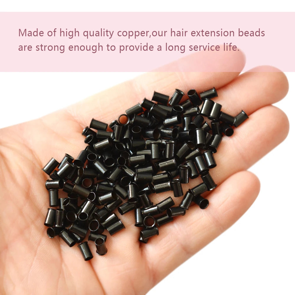 • 1000pcs 3.4mm Micro Copper Tube Rings for Hair Extensions, Euro Lock Flaring Beads Links, 7 Color Options