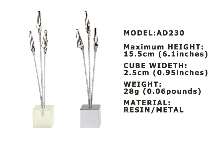 3-Wire Memo Holder Clips Cube for Photos, Notes, Cards - Alligator Clamp Desk Stand for Office or Business