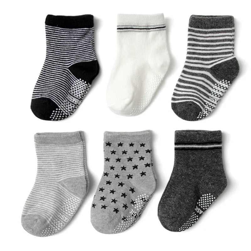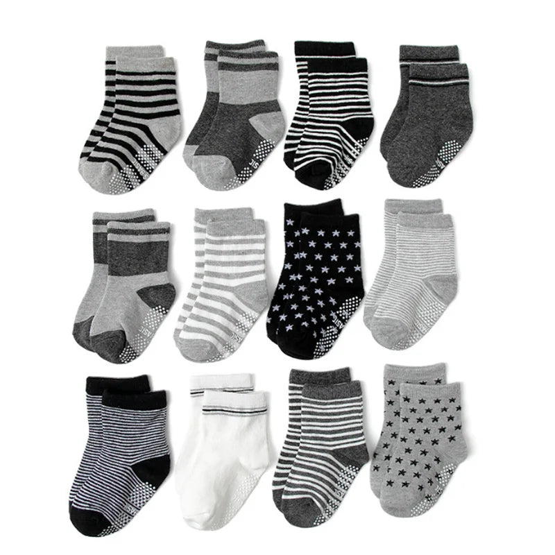 Introducing our delightful collection of children's socks, perfect for keeping your little one's feet comfortable and secure. Crafted from soft, breathable cotton, these socks are designed for babies and young children. Available in classic black and white, they feature a non-slip design to ensure safety as your child explores and plays.