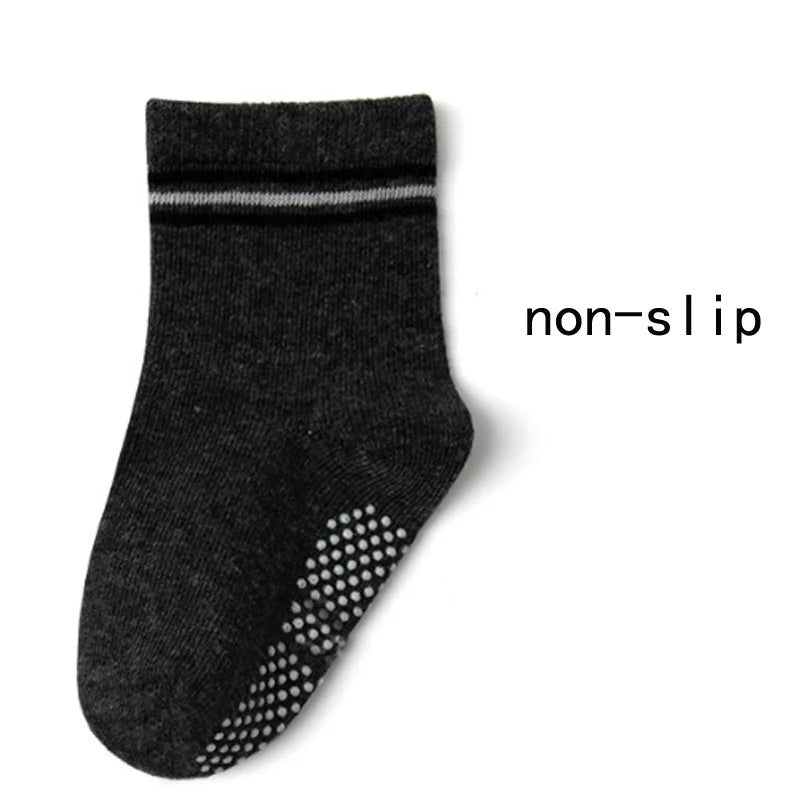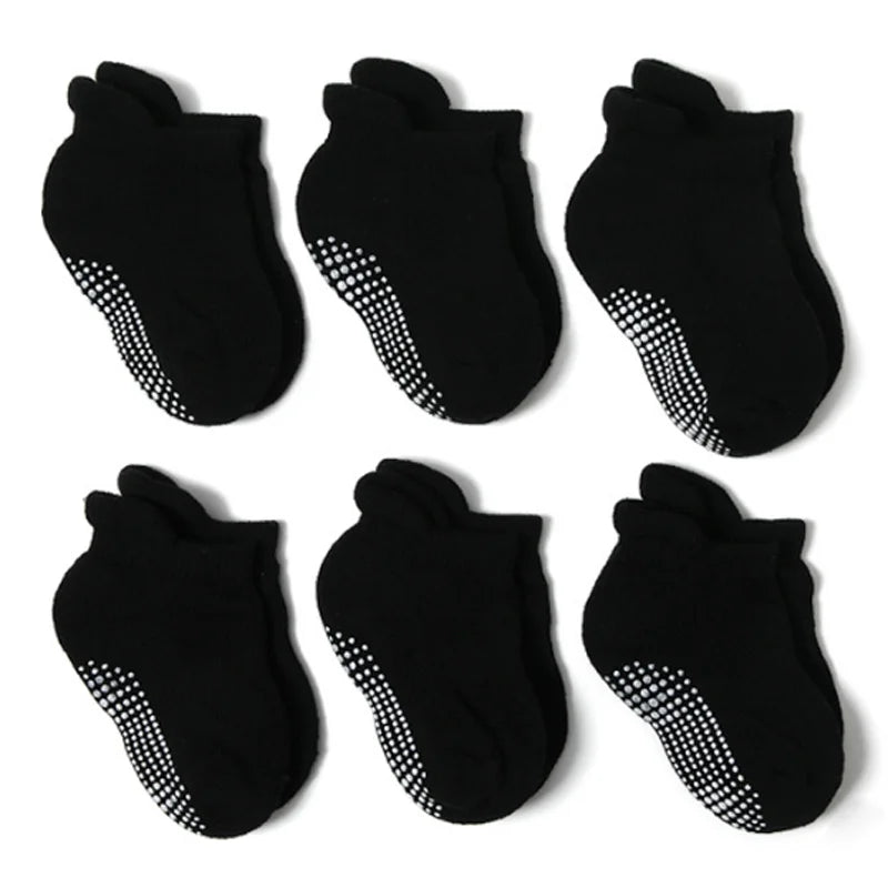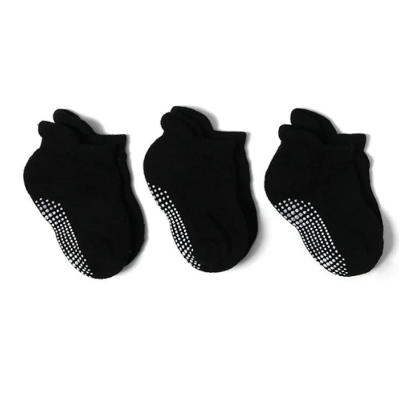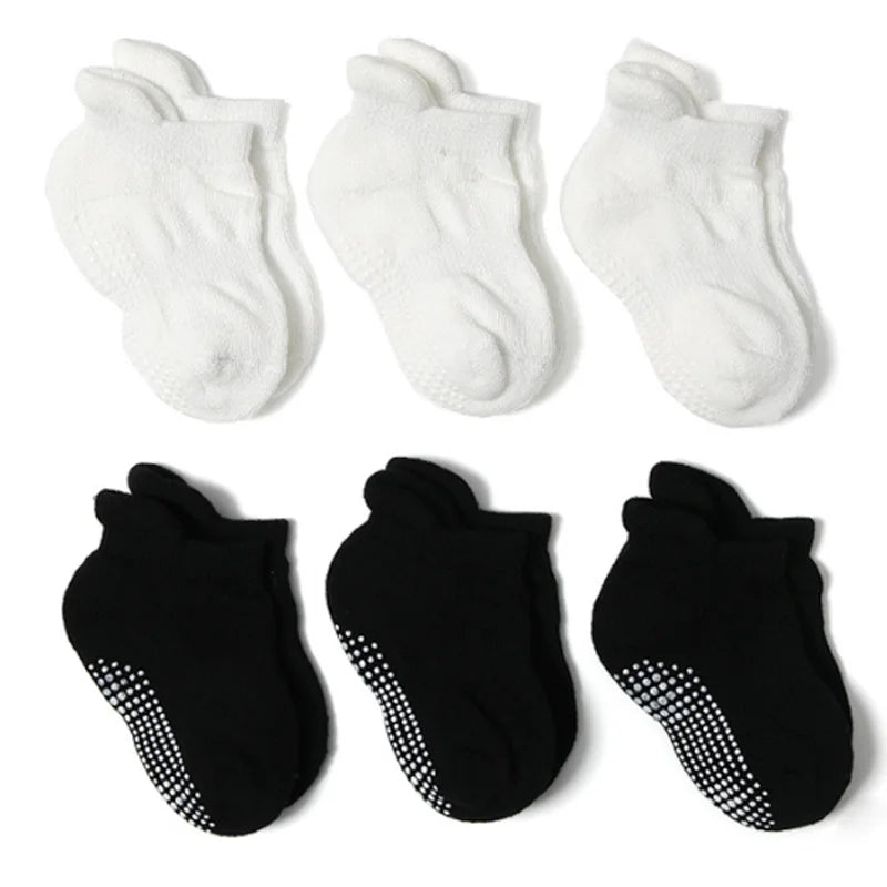 3 Pair Kids Non-Slip Socks Black/White Casual Baby Toddler Socks