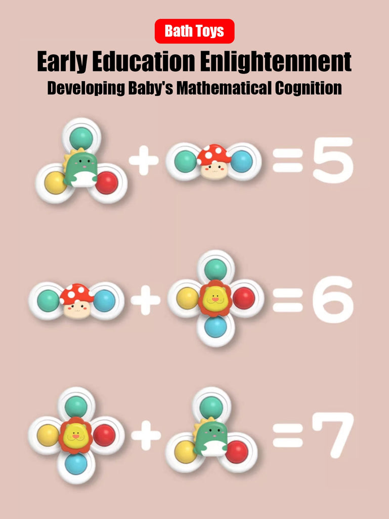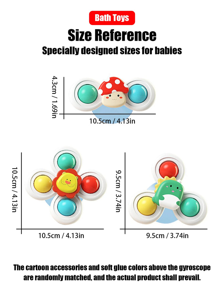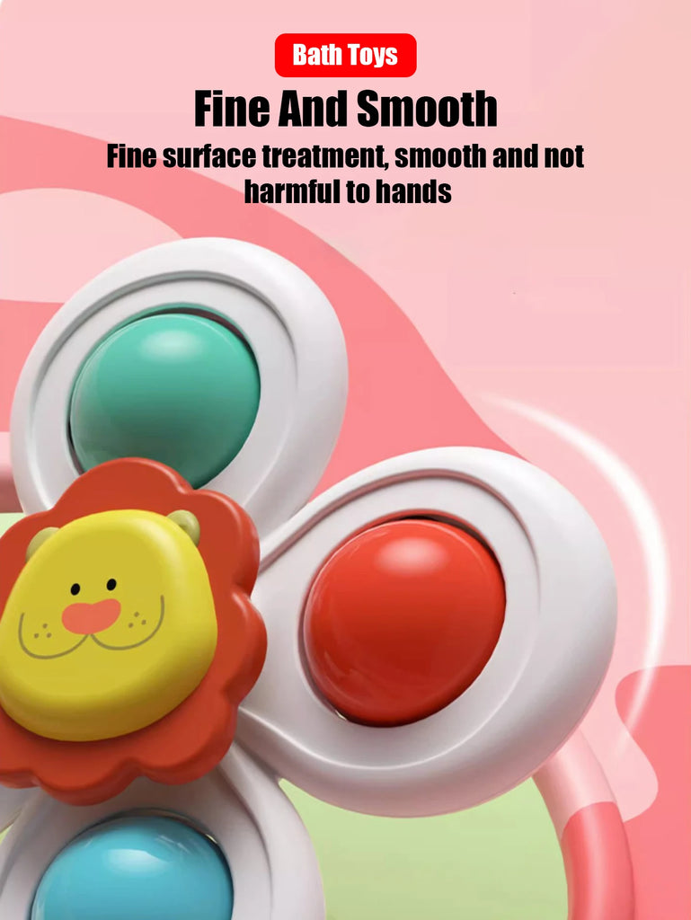 3-Piece Kids Suction Spinner Toy - Animal Design for Windows, High Chairs, Tables, Travel, Bath Fun