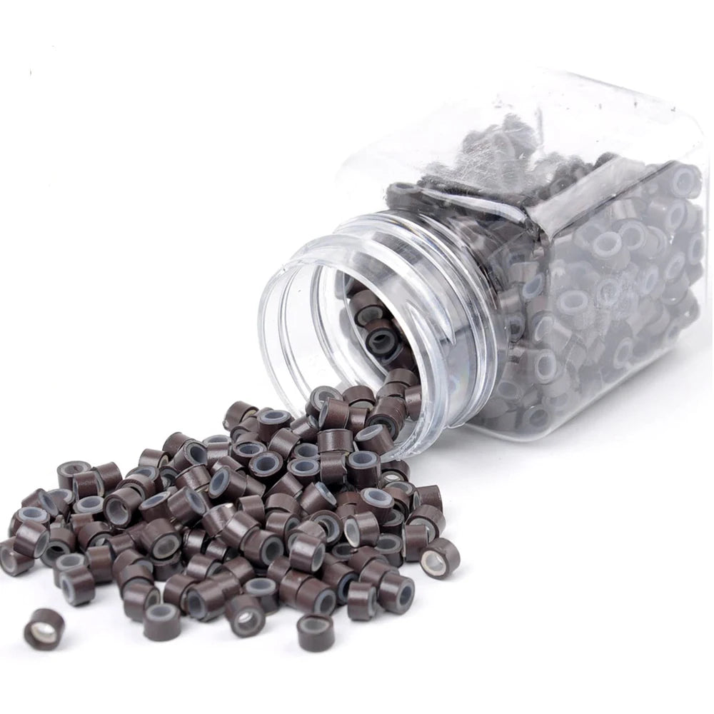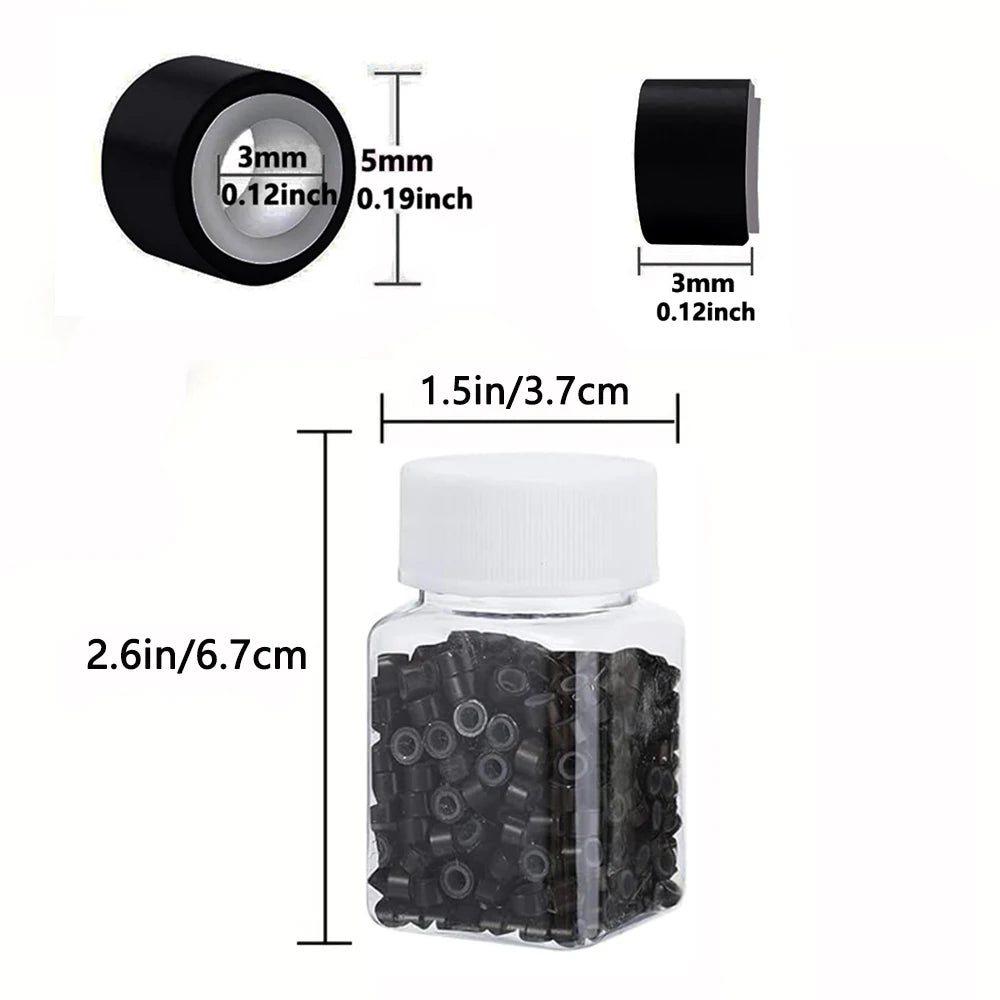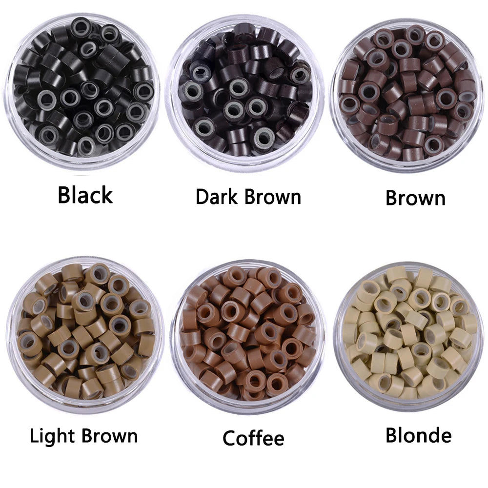 500pcs Silicone Lined Micro Rings Beads, 5mm Hair Extension Links Tool