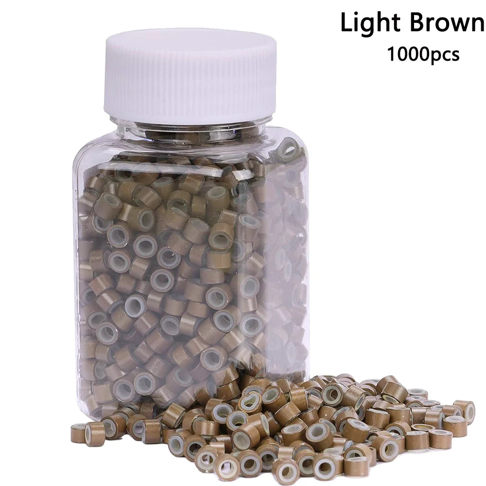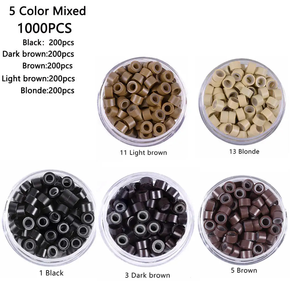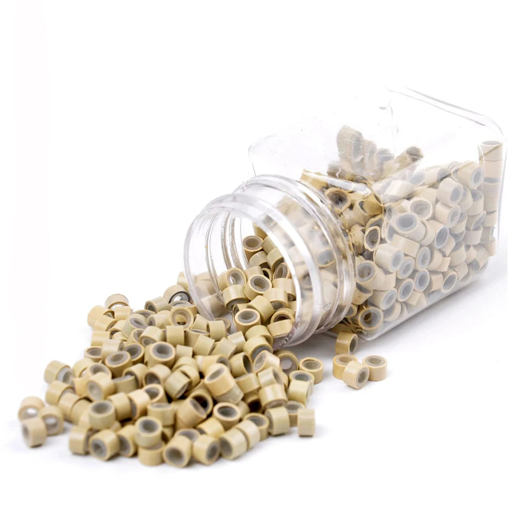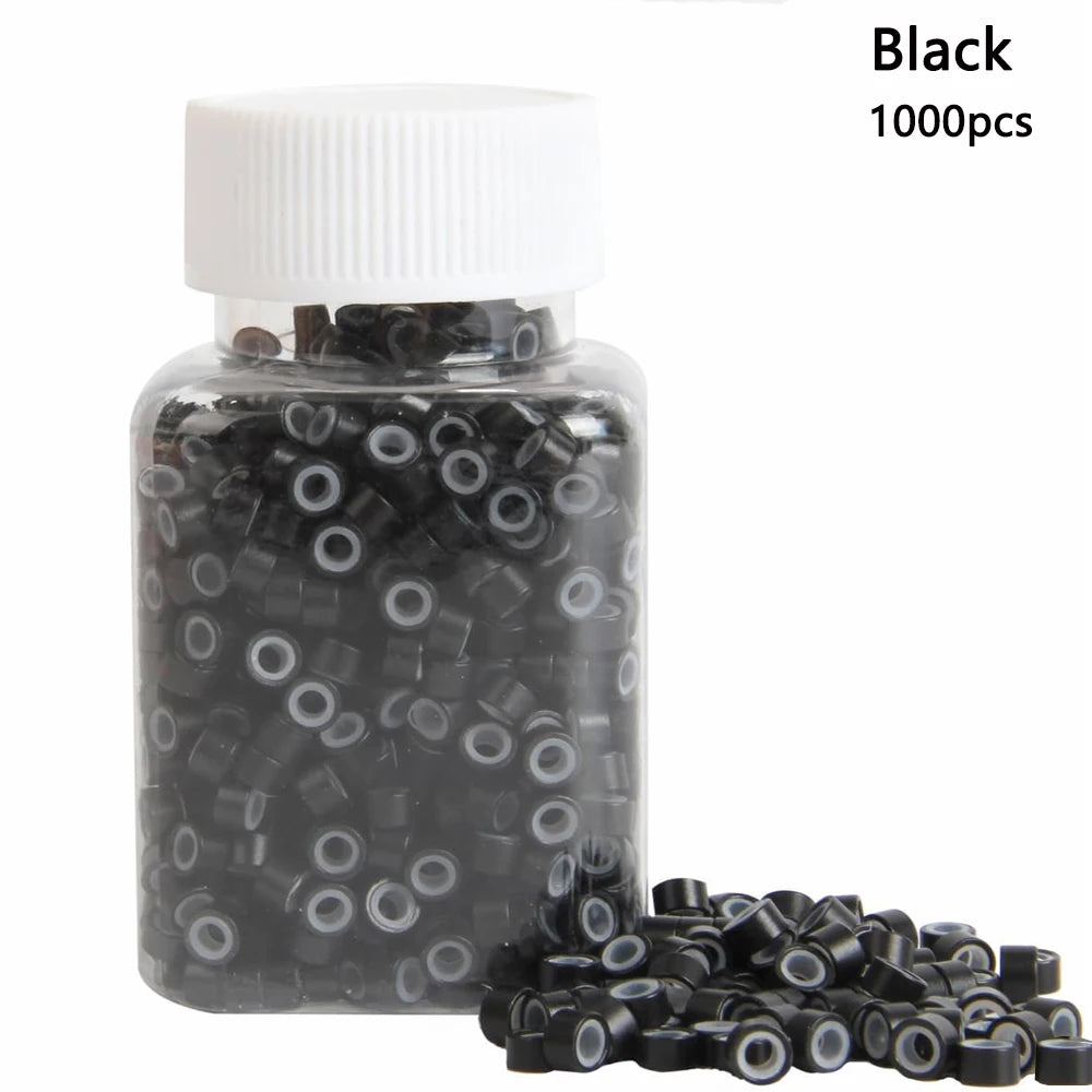 500pcs Silicone Lined Micro Rings Beads, 5mm Hair Extension Links Tool