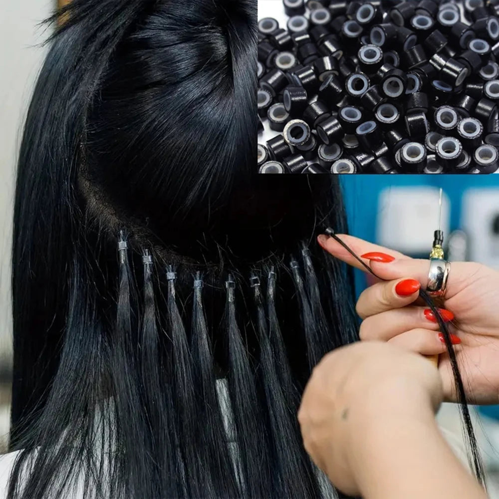 Introducing our premium 500-piece set of Hair Extension Micro Rings Links Beads. Perfect for anyone looking to achieve seamless, natural-looking hair extensions, these 5mm silicone-lined beads ensure a secure and comfortable fit. Ideal for professional stylists or DIY enthusiasts, these micro rings are designed to hold extensions in place without causing damage to your natural hair.