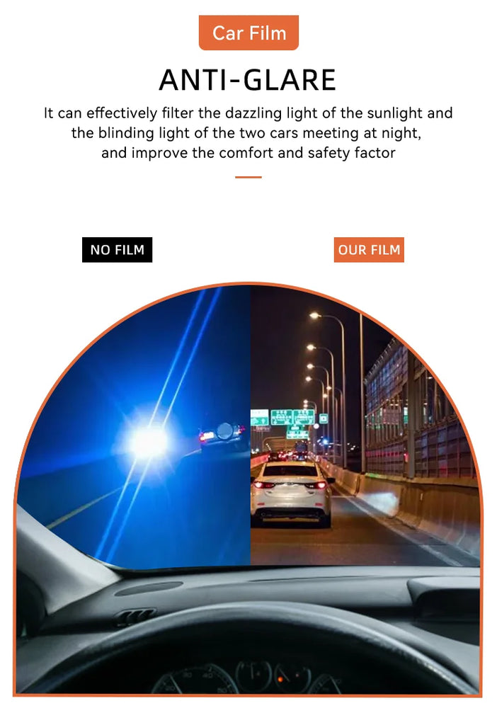 Measuring 50cm x 300cm, this film is made from high-clear PET material, offering a sleek black or blue finish. It effectively blocks 99% of UV rays and reduces infrared (IR) radiation by up to 100%, helping protect your car's interior from fading and reducing air-conditioning energy consumption. This film is also explosion-proof, preventing glass shattering for added safety.