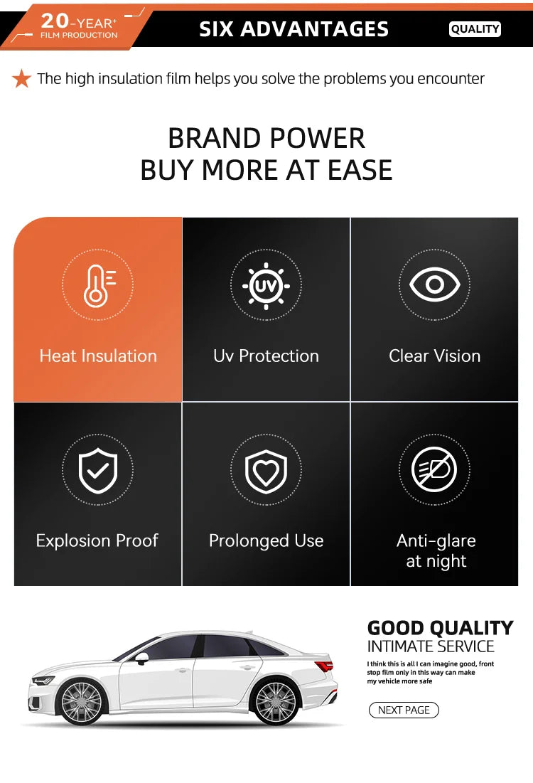 Enhance your car's comfort and style with our high-quality nano ceramic solar tint window film. Designed for superior heat and UV protection, this window film significantly reduces glare and insulates against heat, ensuring a cooler and more private interior. The pure color never fades, and with exceptional durability, it provides long-lasting performance and scratch resistance.