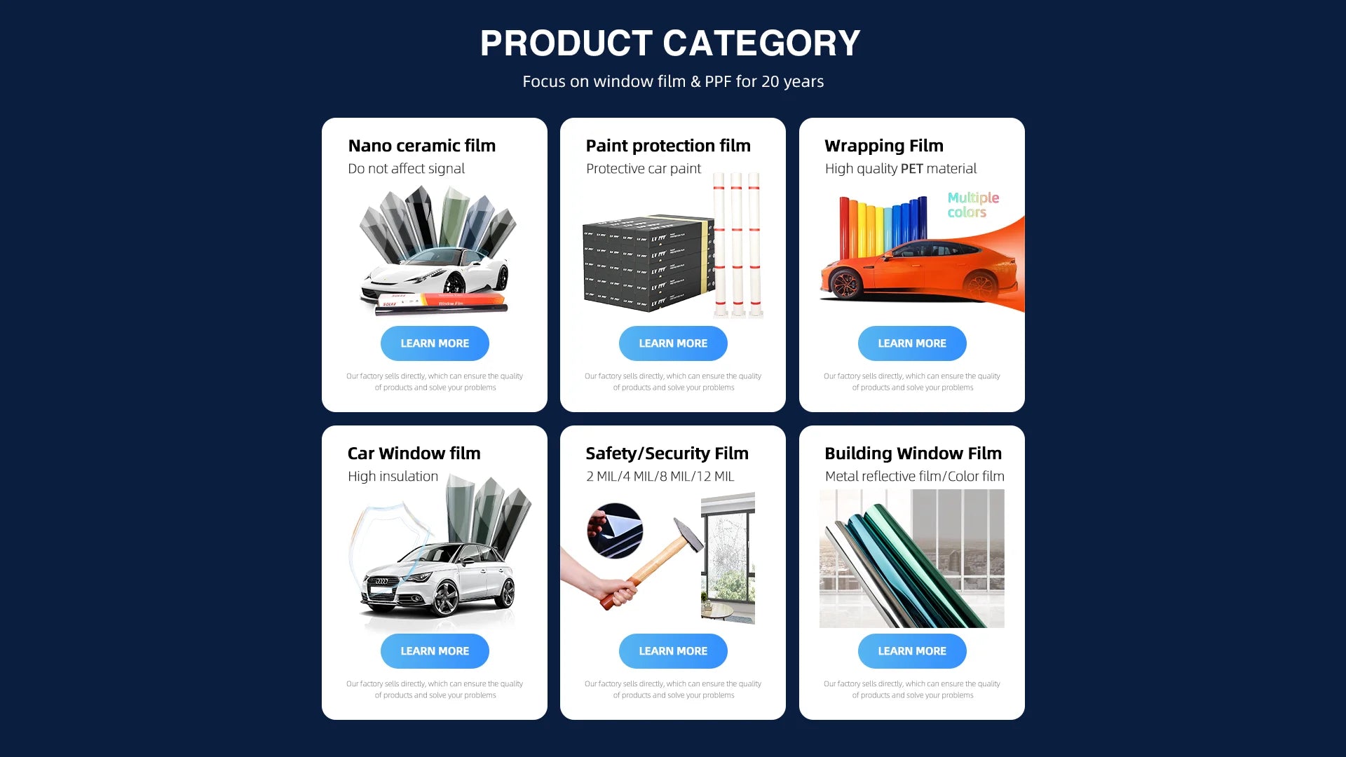 - Multiple Variants: Available with varied Visible Light Transmission (VLT) rates from 5% to 80%.