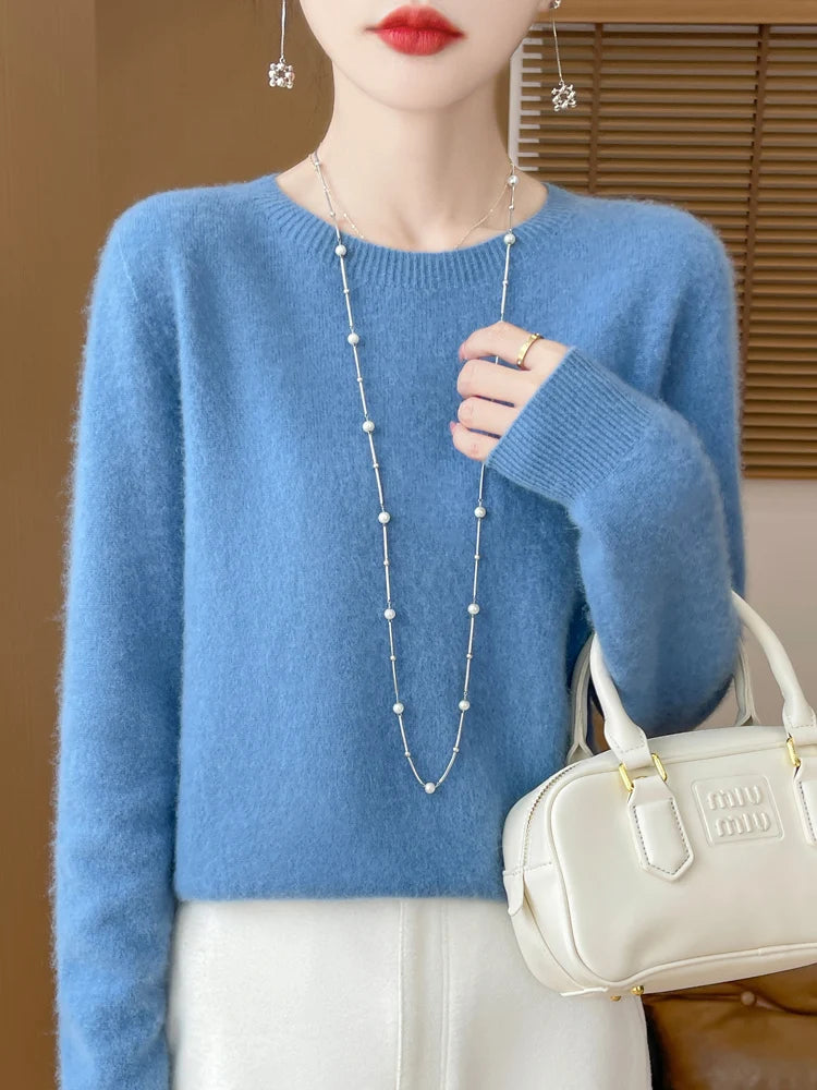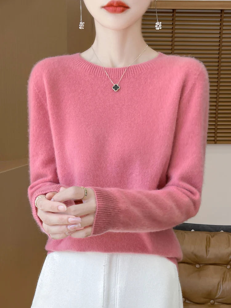 100% Merino Wool Women's O-neck Sweater Long Sleeve Pullover Jumper for Spring, Autumn, Winter Knitwear Top
