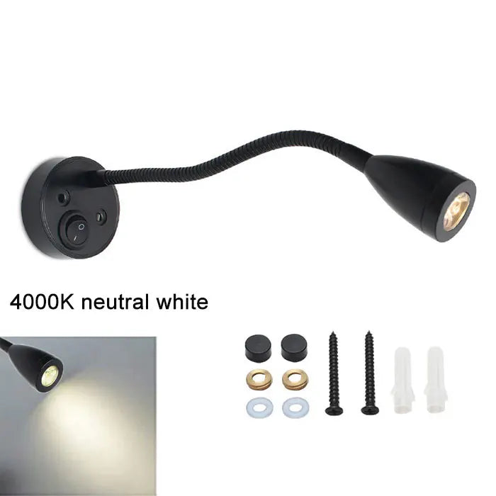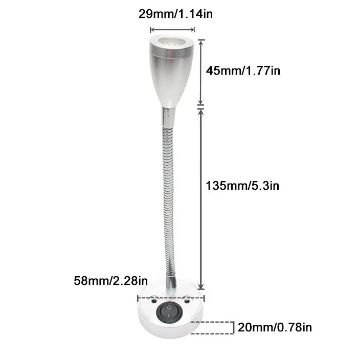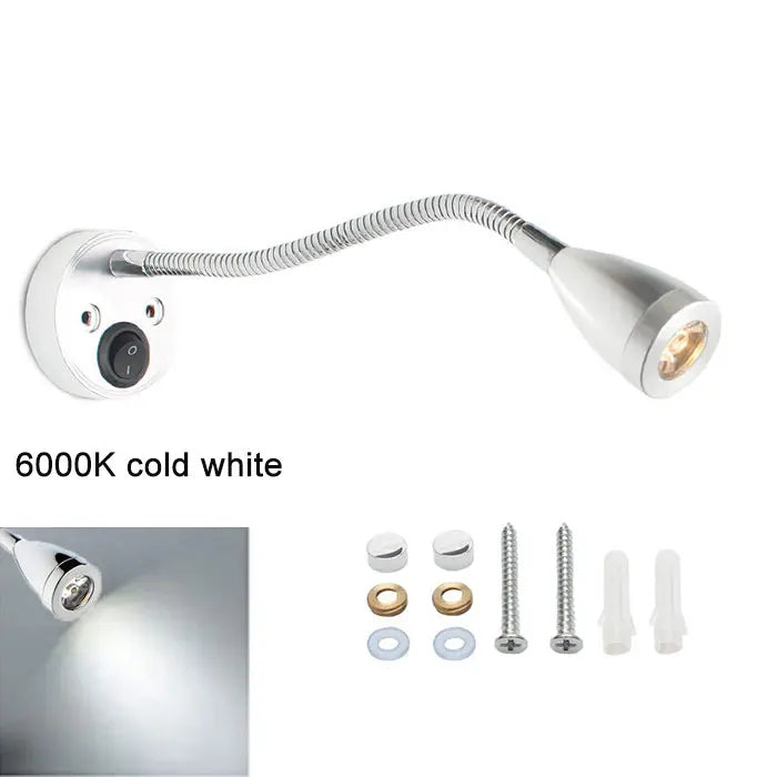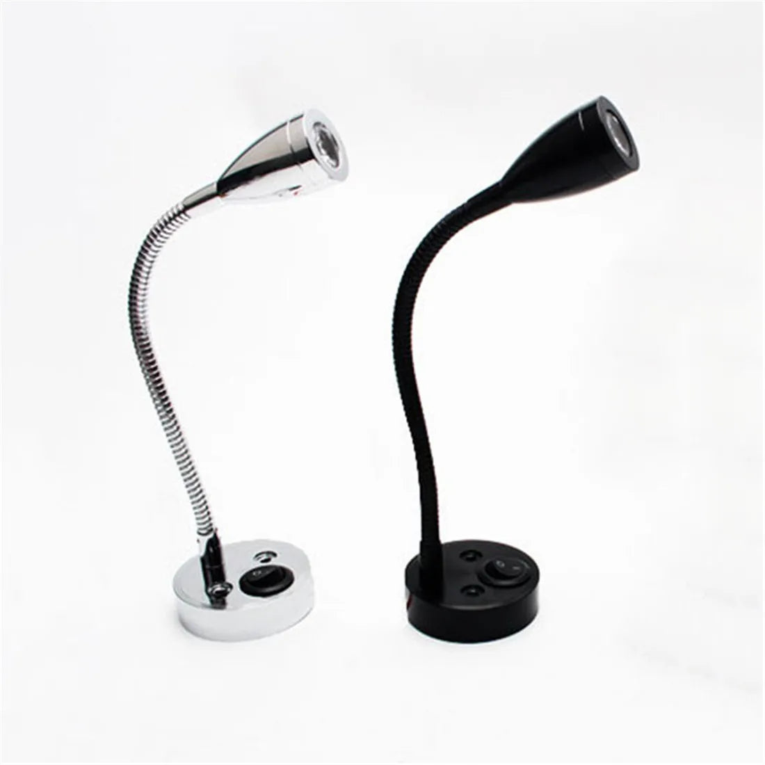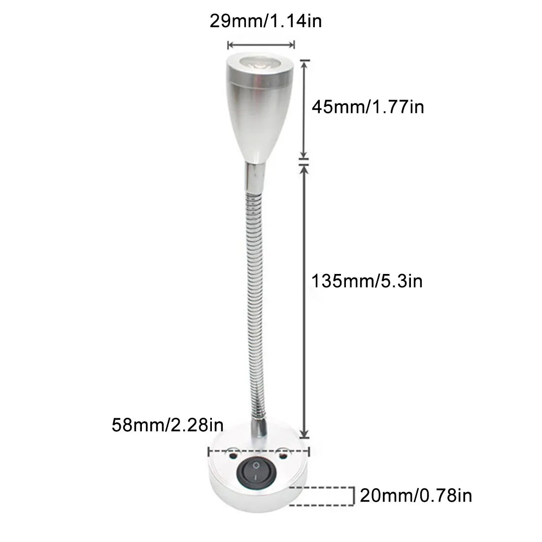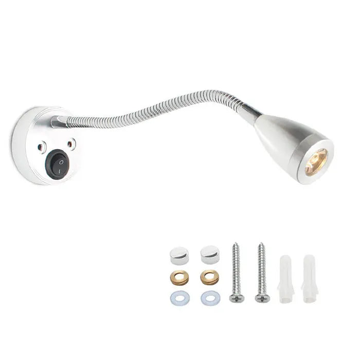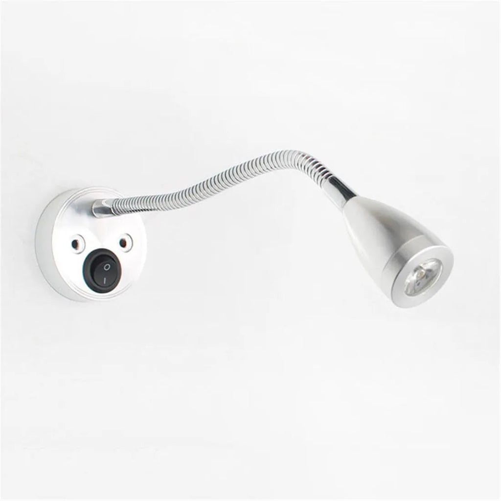 12V Gooseneck RV Reading Light 3W Bedside Wall Lamp with Switch for Boat, Yacht, Caravan, Motorhome