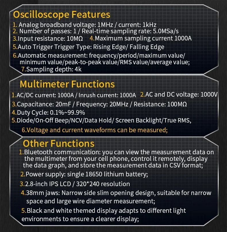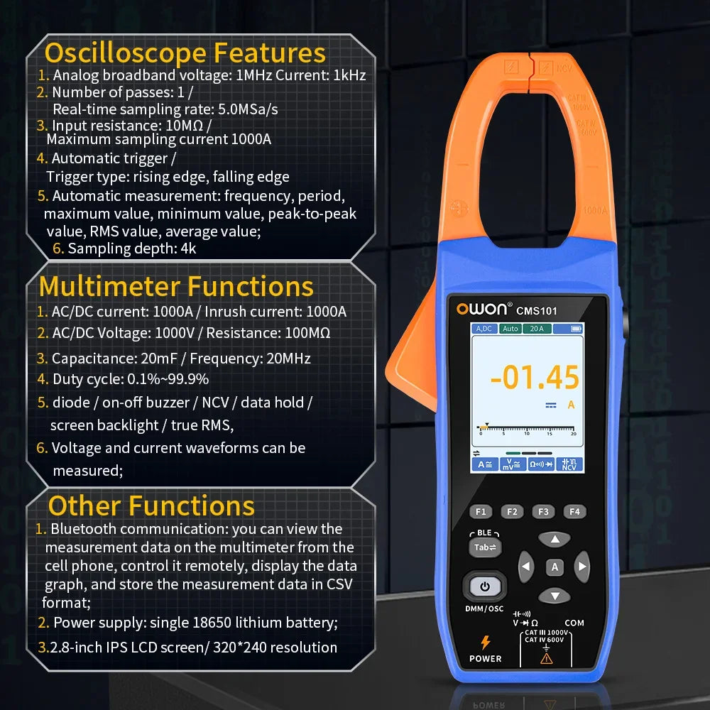 1000A AC/DC Current Clamp Ammeter Digital Oscilloscope with Bluetooth Recorder and Multifunction Tester