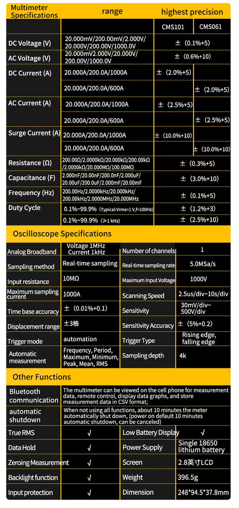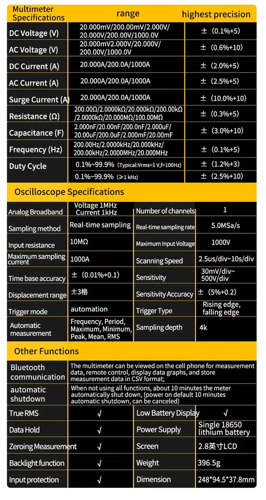 - High Precision: Real-time sampling rate of 5.0MSa/S for accurate results.