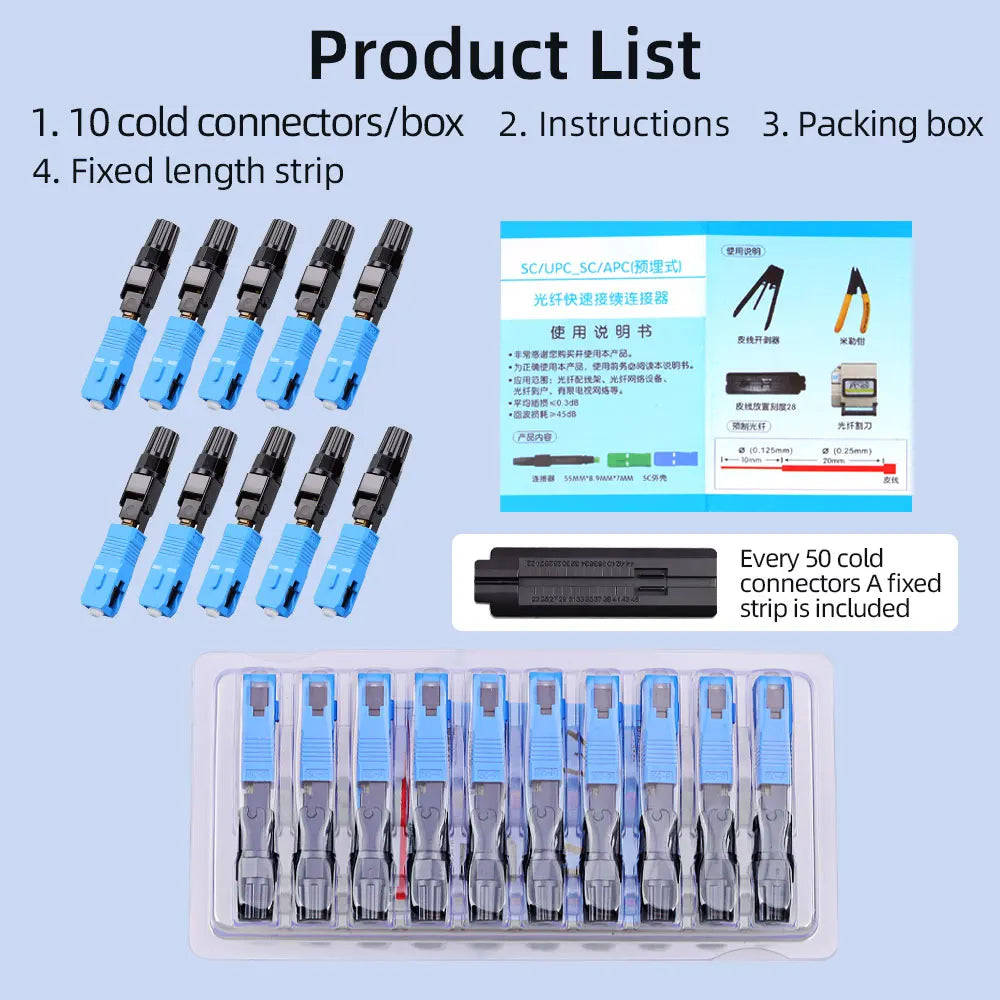 100pcs Fiber Optic Splice Connectors SC-APC/SC-UPC FTTH Quick Connect Kit