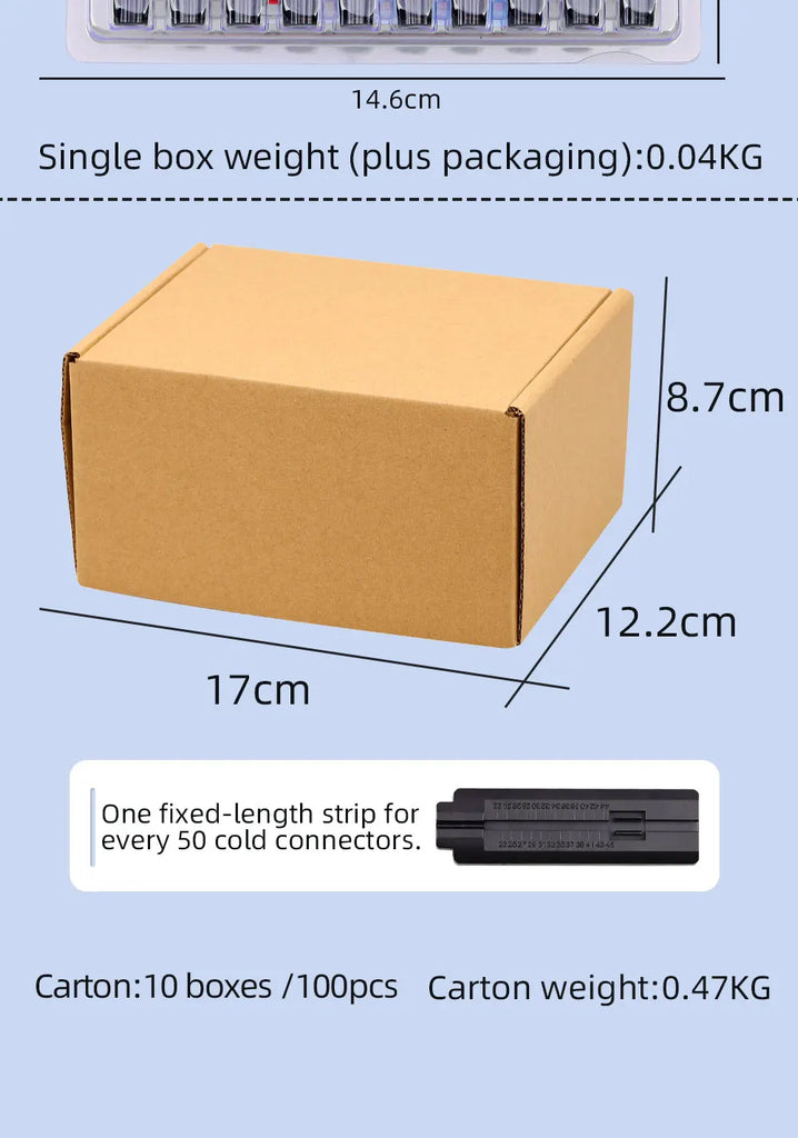 The splice accommodates 2*3 butterfly fiber optic cables and operates effectively in extreme temperatures ranging from -40°C to +75°C. It also boasts an impressive return loss of ≥50dB, enhancing signal integrity. For added convenience, each order includes a complimentary length fixer to aid in installation.