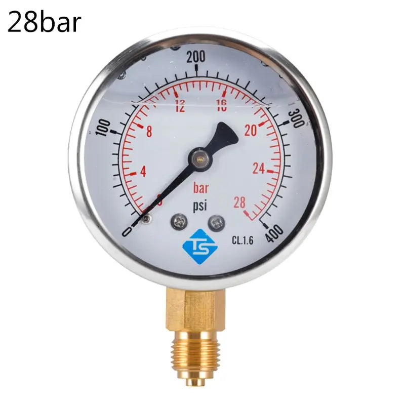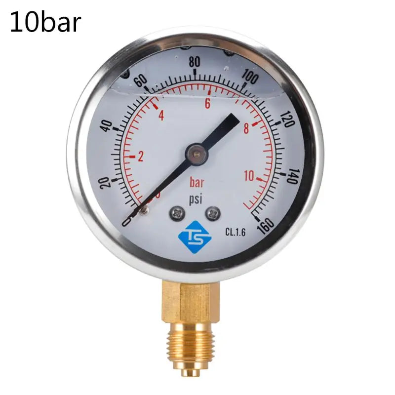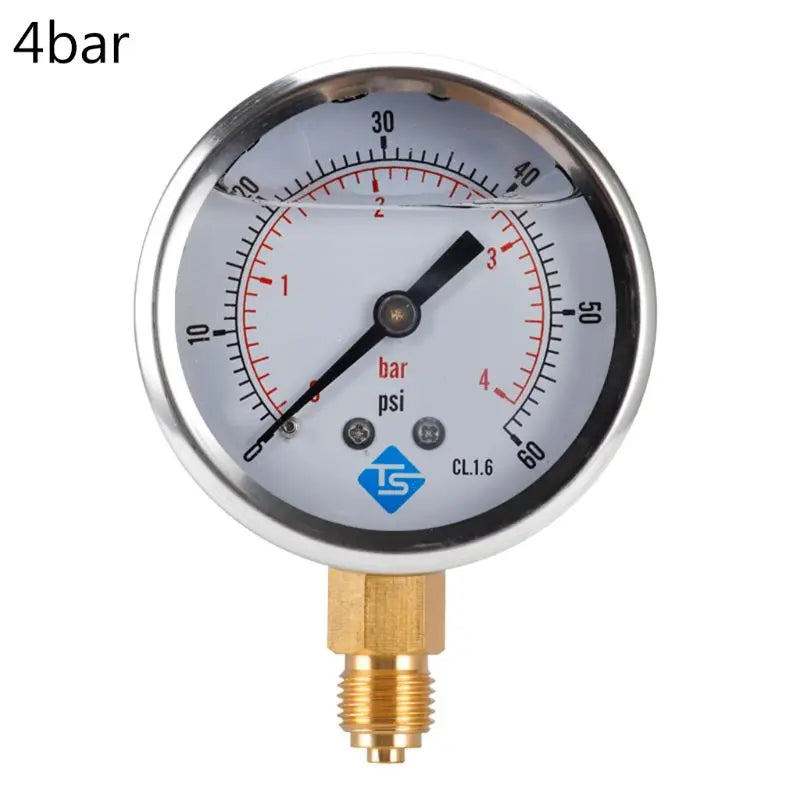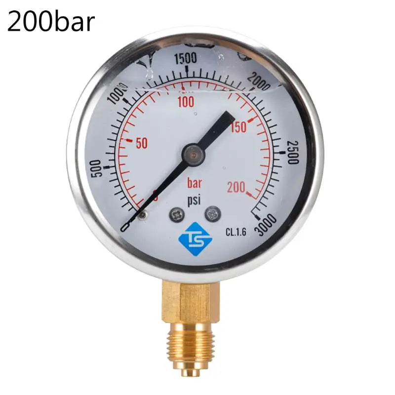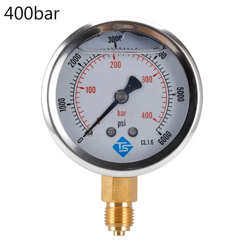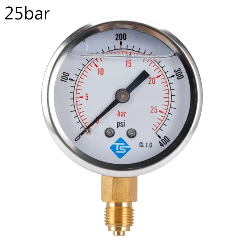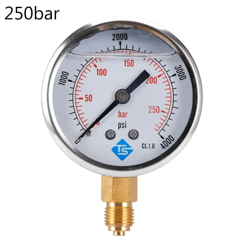 Introducing our high-performance Pressure Gauge, perfect for monitoring pressure in various hydraulic applications. This robust gauge features glycerine filling and durable brass internals, ensuring accurate and reliable readings. It offers a 1/4 BSP bottom connection and boasts an impressive accuracy class of 1.6%. Suitable for use with water, oil, air, and gas up to 25 bar, this gauge can handle maximum process temperatures up to 60°C. Choose from a wide selection of pressure ranges to best fit your needs, from 0-1 bar to 0-700 bar. Please note this gauge is not suitable for use with nitrogen or oxygen.