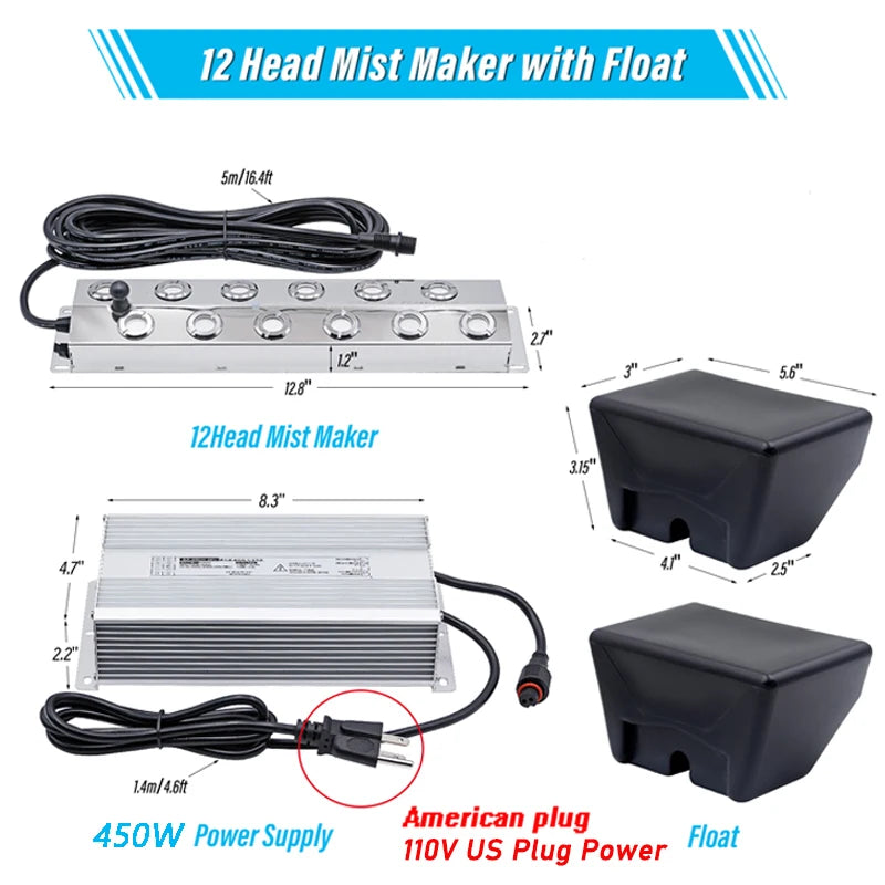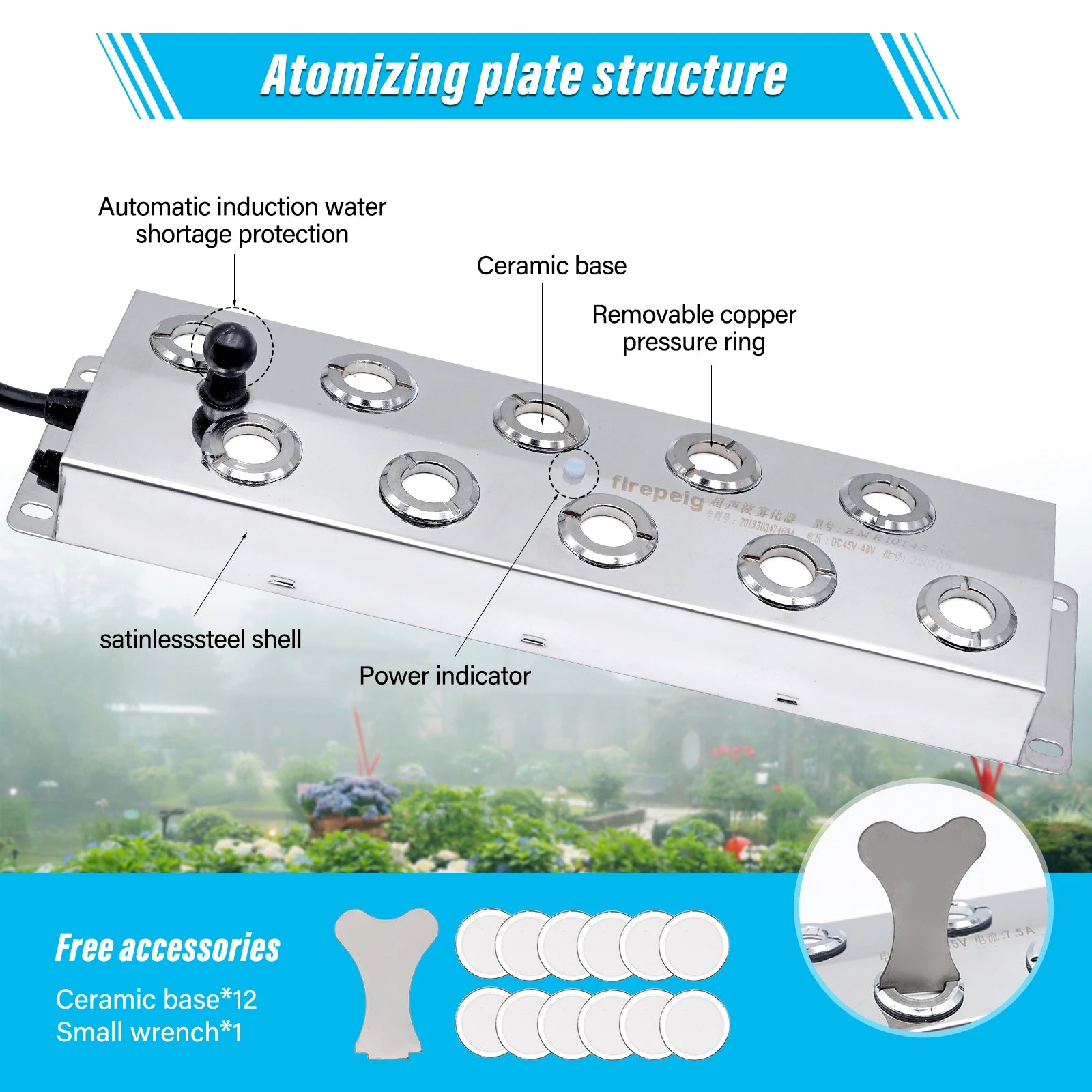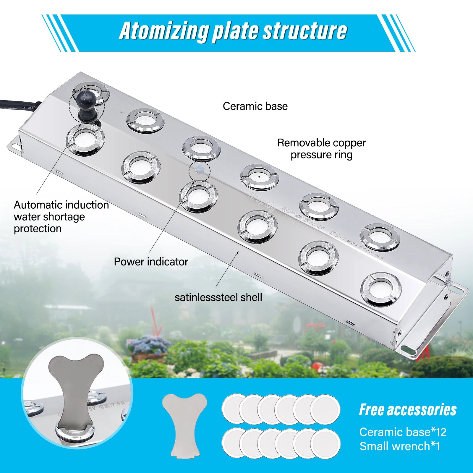 110V/220V Ultrasonic Mist Maker Fogger 4/6/8/10/12 Head Stainless Steel Air Humidifier for Greenhouse Hydroponics