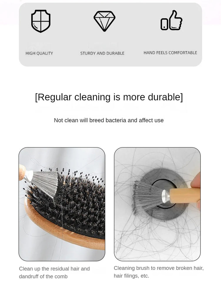 Elevate your grooming routine with our versatile Cleaning Brush, specially crafted to keep your hairbrush in top condition. Made from durable wood and metal, this essential tool effectively removes hair and debris, ensuring your brushes stay clean and efficient. Its compact and lightweight design is perfect for travel, so you can maintain high hygiene standards wherever you go. To clean, simply rinse and towel dry after each use.