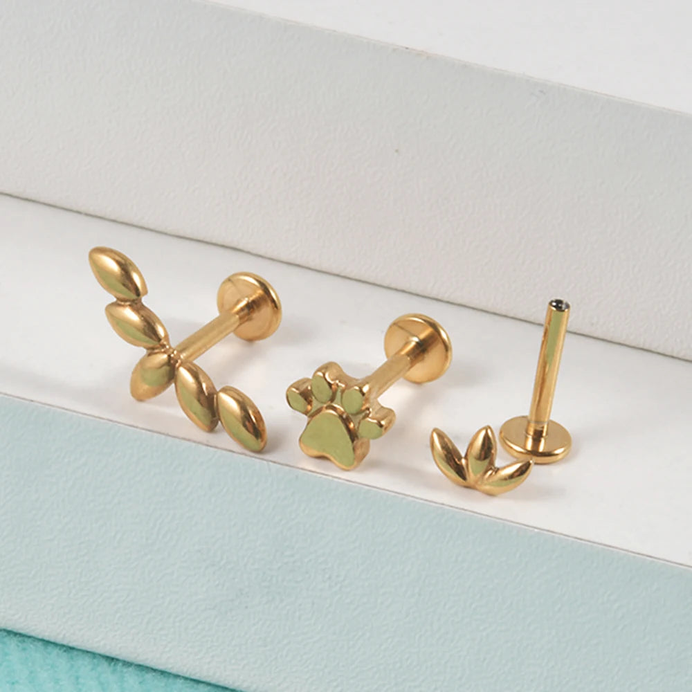 Gold Plated Surgical Steel Marquise Helix Tragus Lip Stud Cartilage Piercing Earring Labret Jewelry