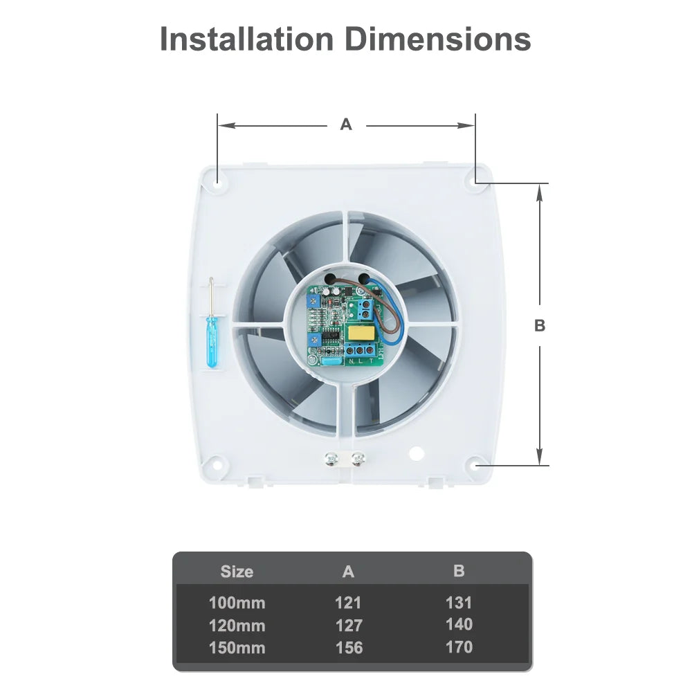 Enhance your bathroom ventilation with this efficient exhaust fan, designed for optimal air circulation and humidity control. Featuring a ceiling or wall mount option, this fan is equipped with a backdraft shutter to prevent outdoor air from entering. Its ball-bearing motor ensures reliability and durability, while the copper coil construction provides excellent performance. The adjustable humidity sensor ranges from 60% to 90% to automatically activate the fan when needed, and a user-friendly timer allows you to set the operating time from 1 to 30 minutes. With an impressive maximum air flow of 95 m³/h and low noise operation at just 34 dB, this IPX4-rated fan is perfect for maintaining a comfortable and fresh environment in your bathroom.