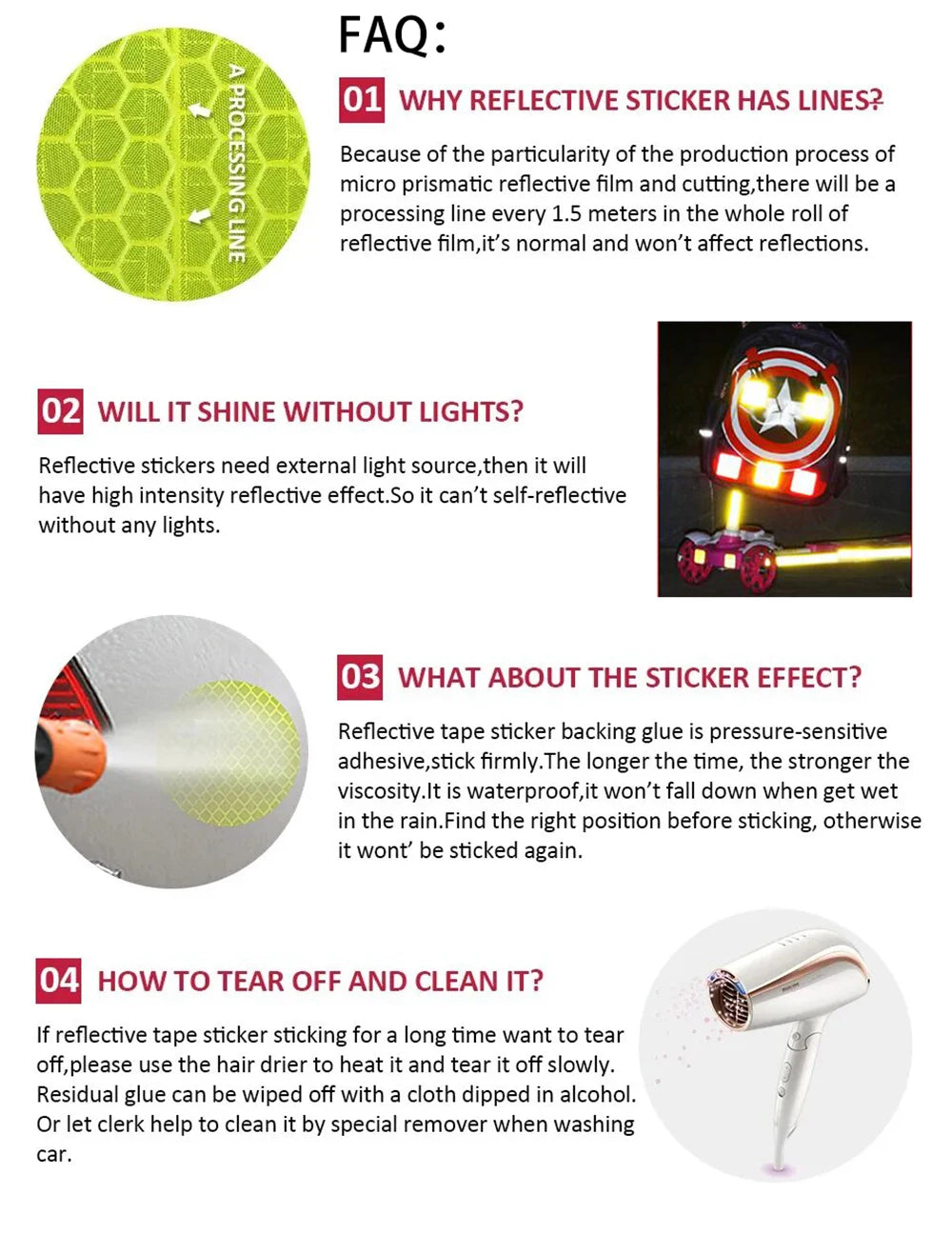 Perfect for enhancing visibility in road traffic, construction sites, corridors, workshops, and schools. Choose your color preference and ensure safety with our high-visibility reflective tape.