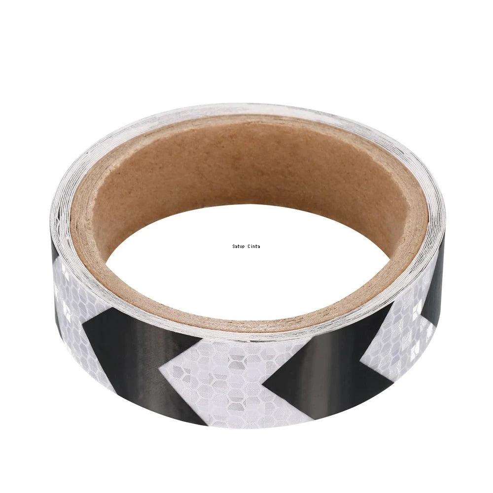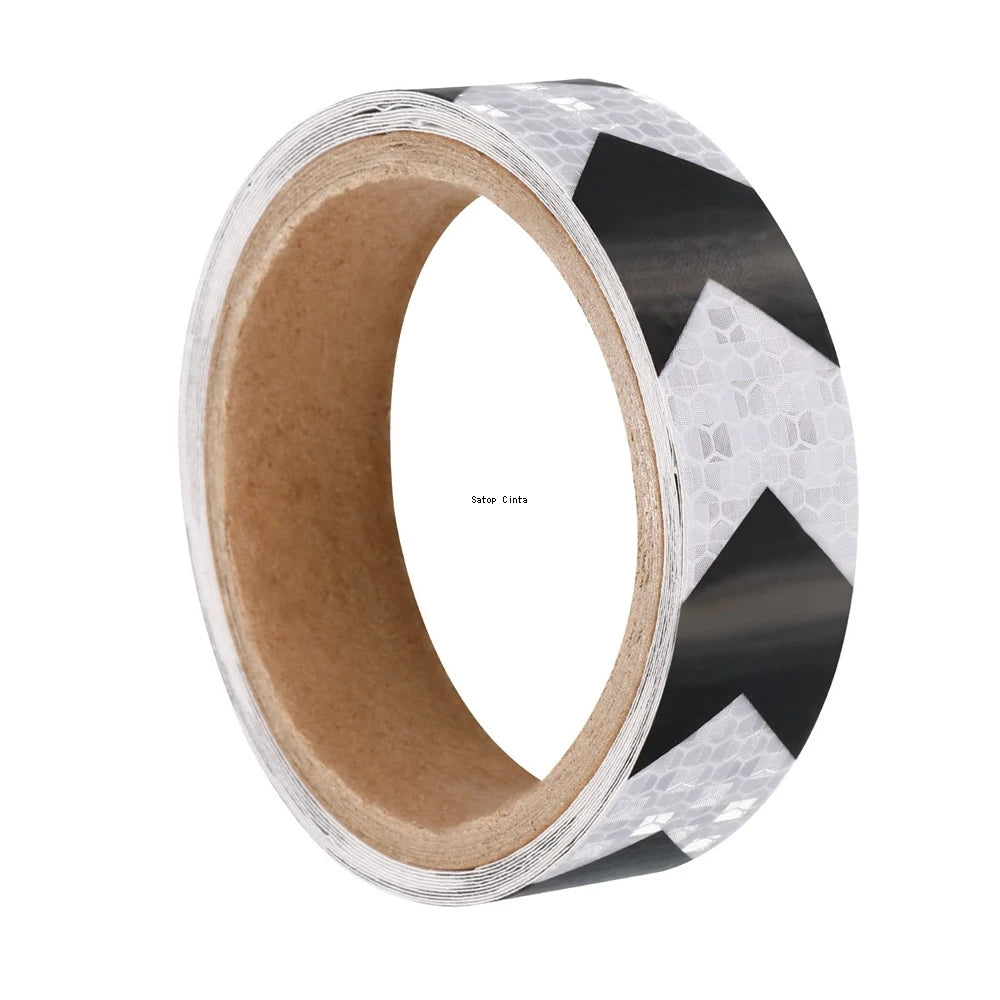25mm x 5m Arrow Reflective Safety Tape Black-White Waterproof High Visibility Adhesive Stickers for Bicycle Car Warning Reflectors
