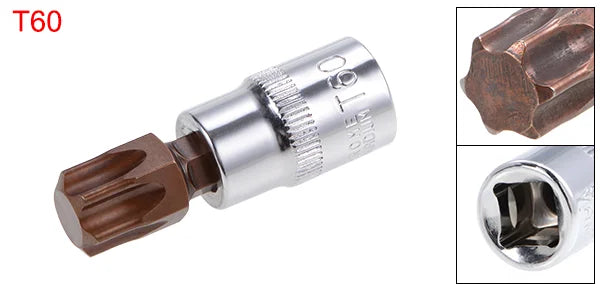 3/8" Drive Torx Bit Sockets T20-T60 S2 Steel 48mm Brass Silver for DIY Auto Repair