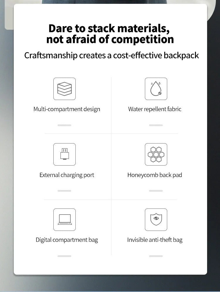 Crafted from durable Oxford material and lined with polyester, this backpack offers durability and sleek aesthetics. It features a convenient zipper closure for easy access, while the interior is thoughtfully designed with multiple pockets, including an interior slot pocket, cell phone pocket, interior zipper pocket, key chain holder, compartment, and a computer interlayer. The exterior open pocket provides additional storage for quick access items.