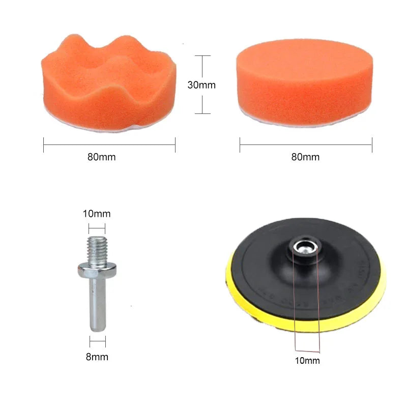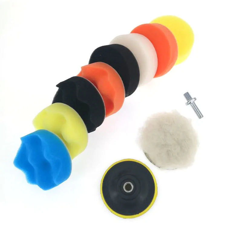 11-Piece 3" Car Polishing Pad Set - Self-Adhesive Buffing, Waxing, Sponge & Wool Discs with Drill Adapter