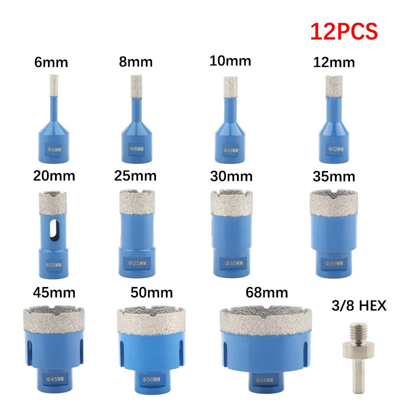 Diamond Drill Bit Set for Tile & Stone - 4/6/7/9/12pcs M14 Thread Hole Saw Kit for Ceramic, Granite, Marble