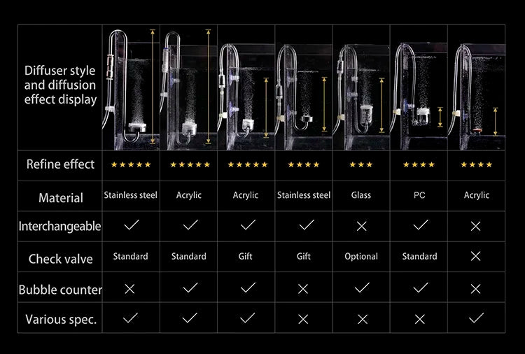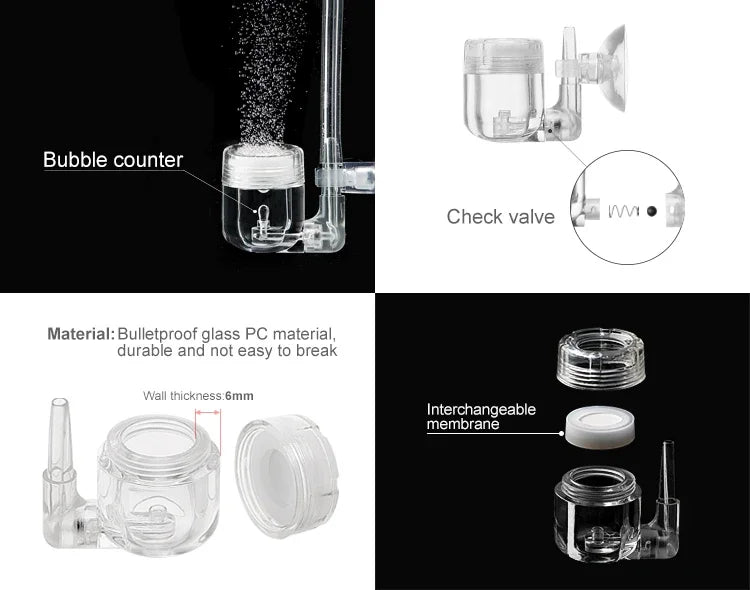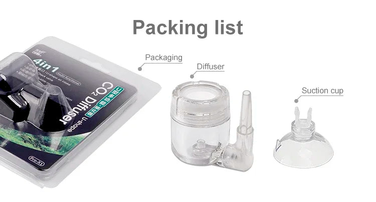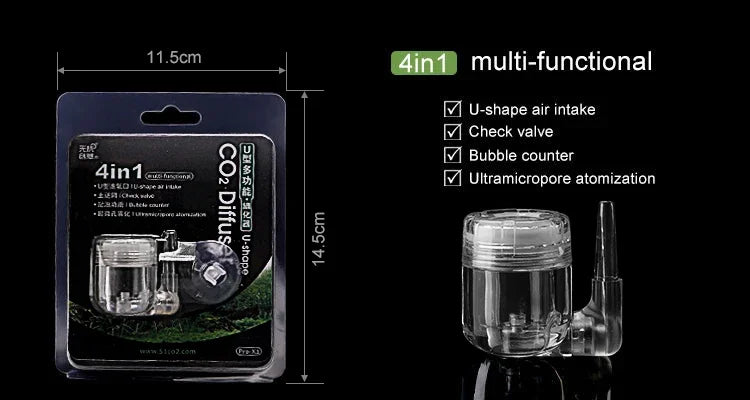 4-in-1 Aquarium CO2 Diffuser with Suction Cup for Planted Tanks