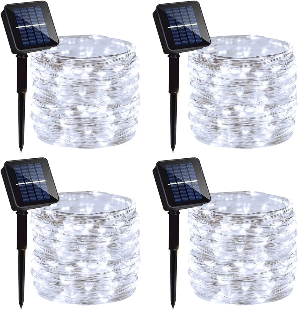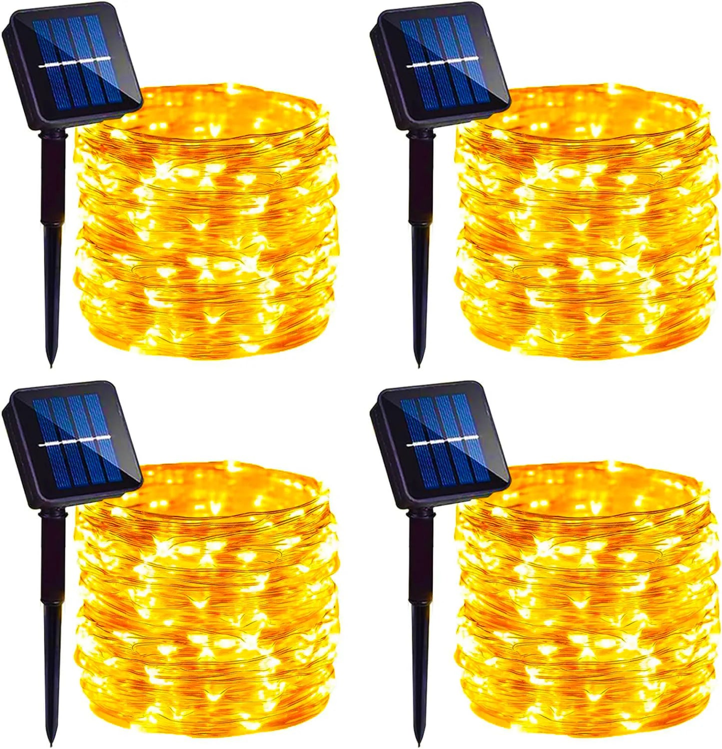 4-Pack Solar Fairy String Lights 400 LED Outdoor Waterproof Copper Garland for Holiday Christmas Party Garden Decor