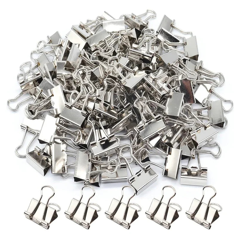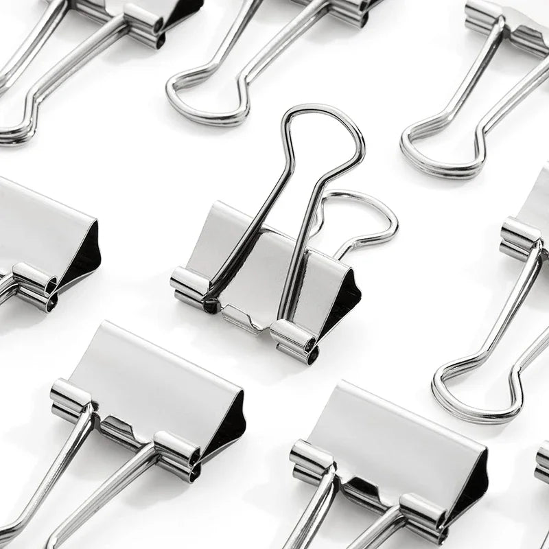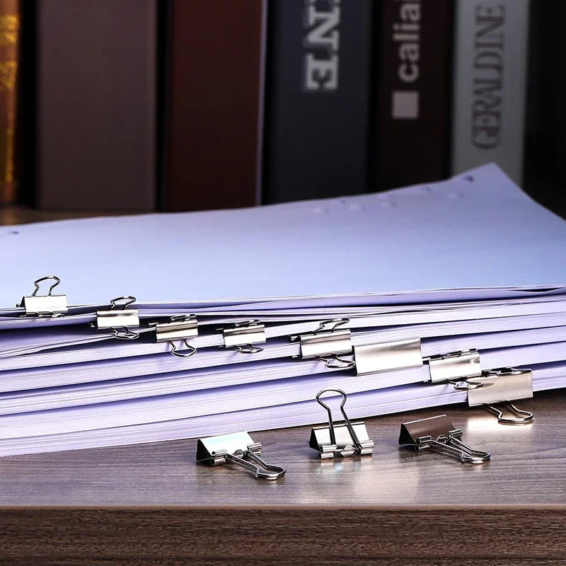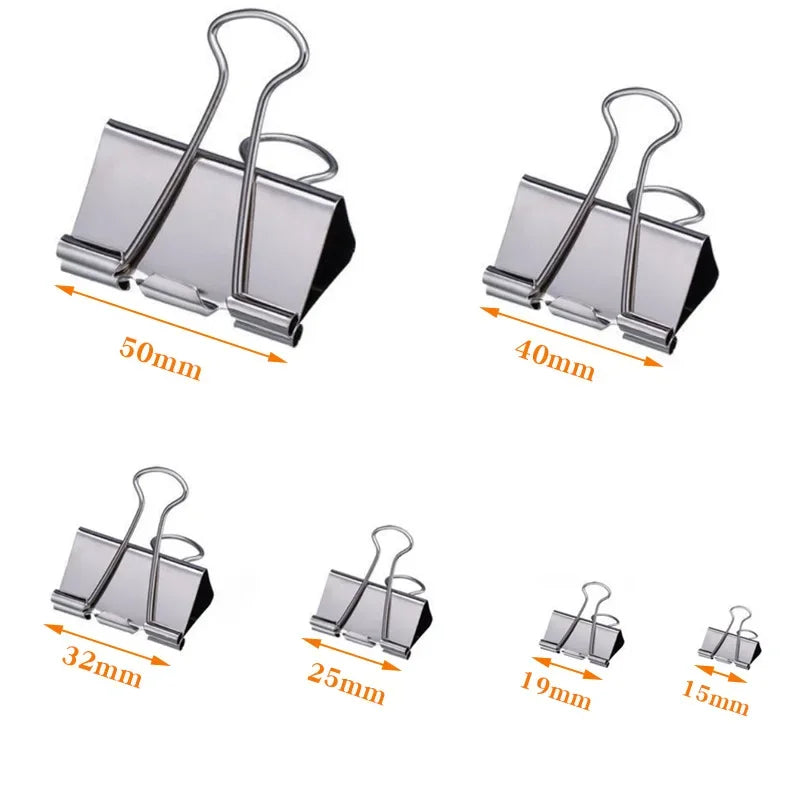 Introducing our versatile metal paper clips, perfect for organizing your documents with ease. Available in various sizes—15mm, 19mm, 25mm, 32mm, 40mm, and 50mm—these silver stationery clips offer a sleek and practical solution for both office and school needs. Crafted from high-quality metal, they provide reliable performance without magnetic interference. Each set includes 5 to 30 pieces, ensuring you have the right quantity for any task. Whether you're filing papers or securing notes, these binder clips are your go-to choice for efficiency and style.