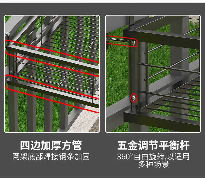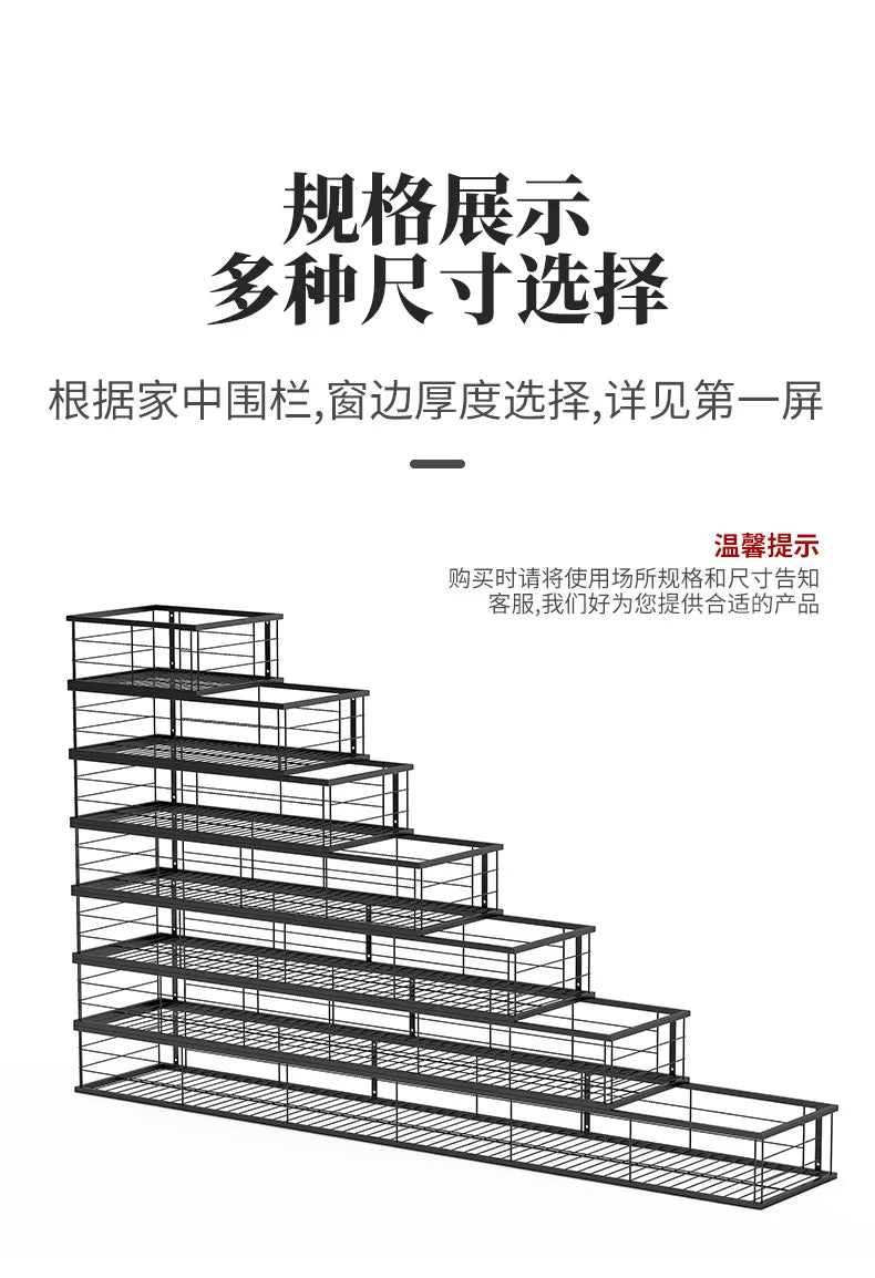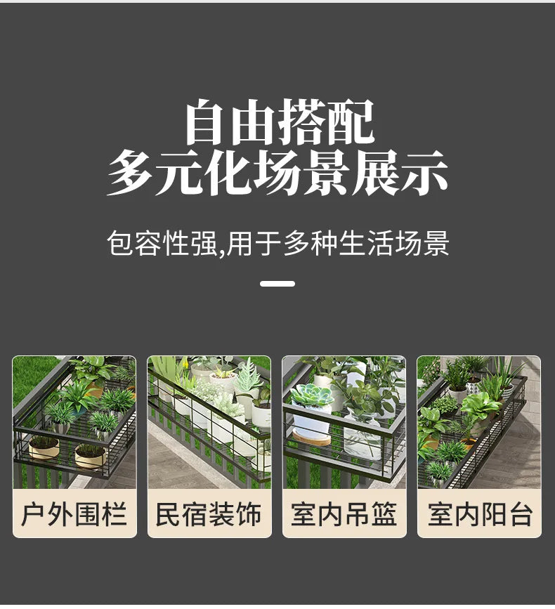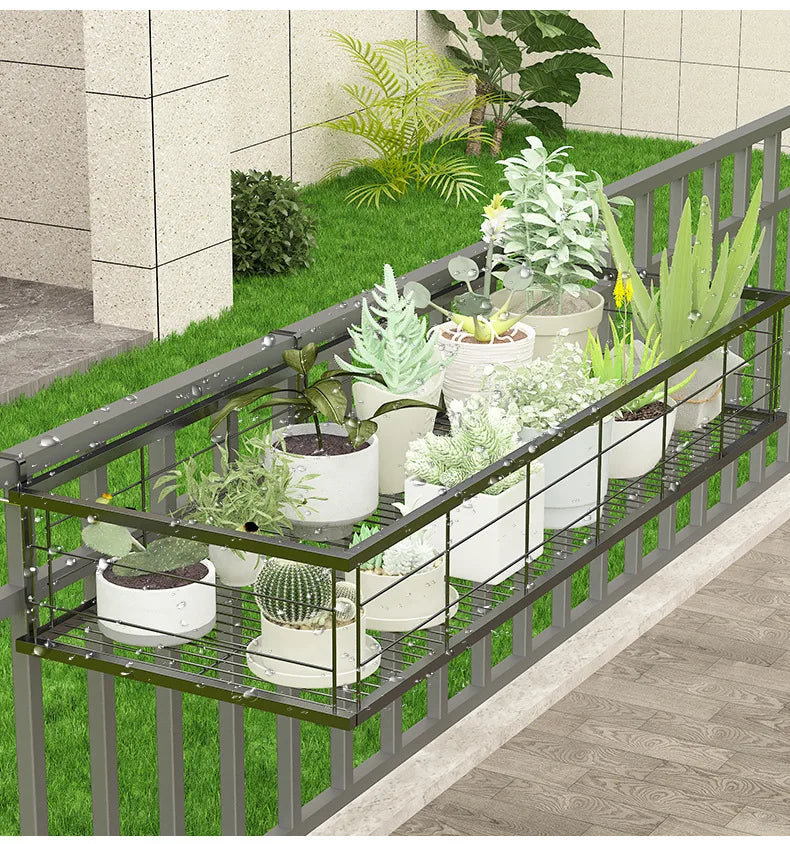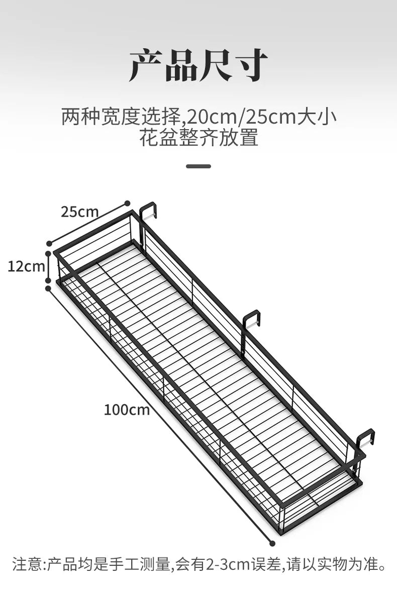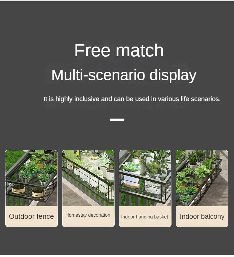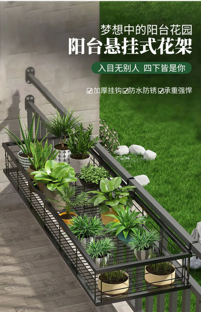 Hanging Wrought Iron Flower Rack Shelf for Balcony Railings & Indoor Plant Pots