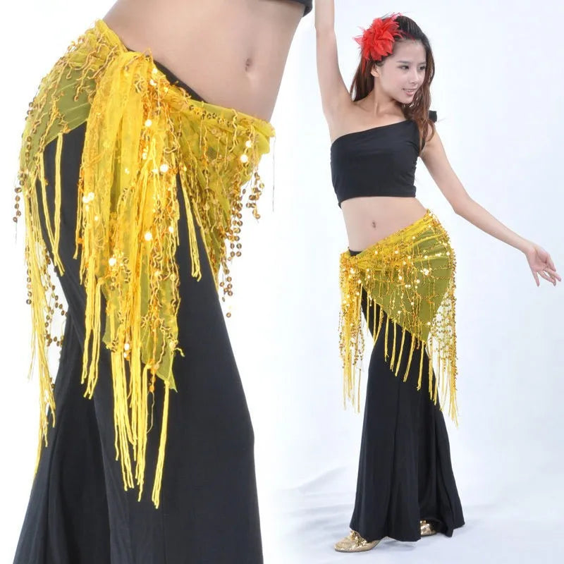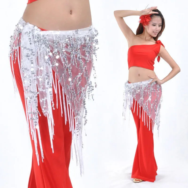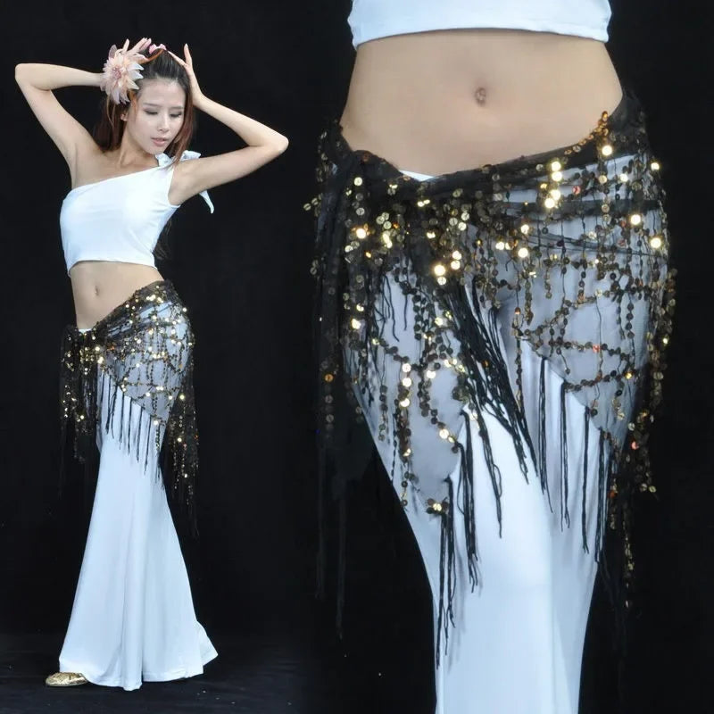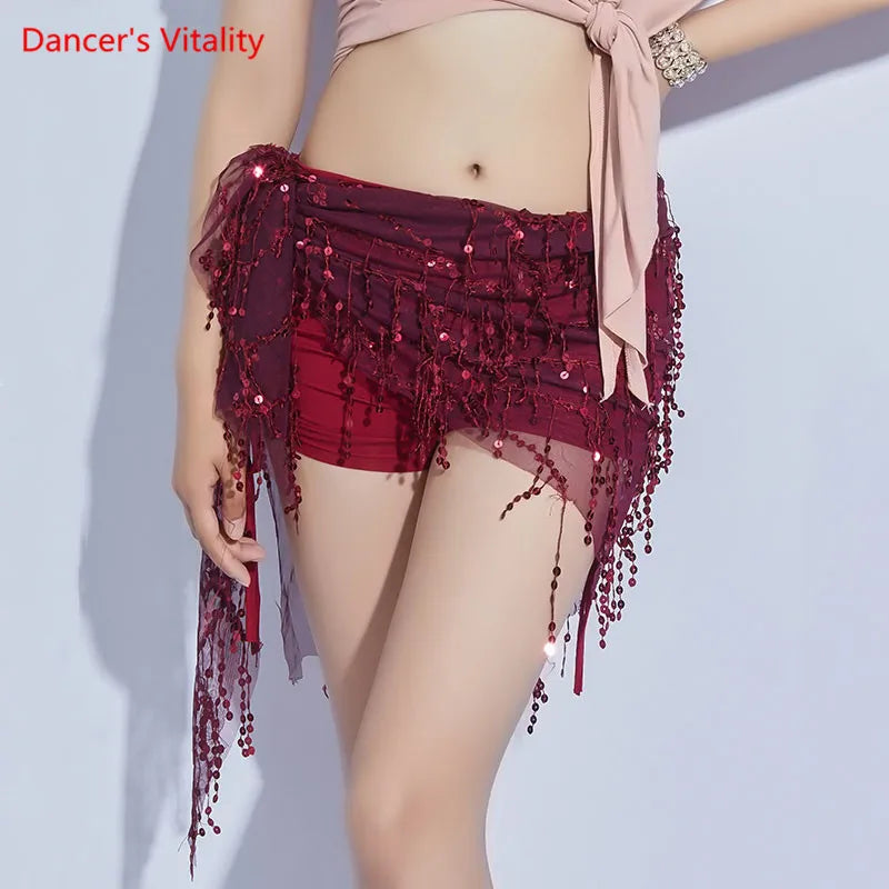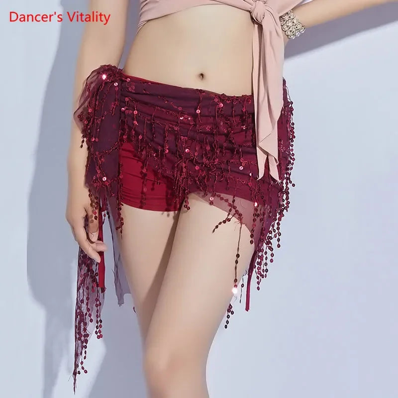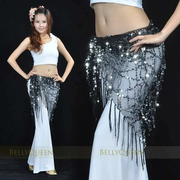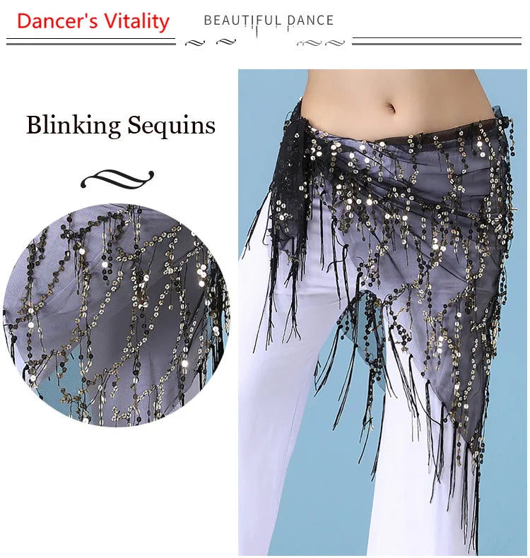 Belly Dance Sequin Hip Scarf Skirt for Women - Elegant Triangle Belt Performance Practice Clothing