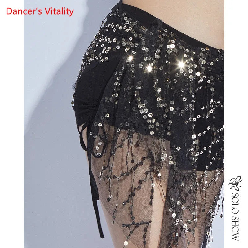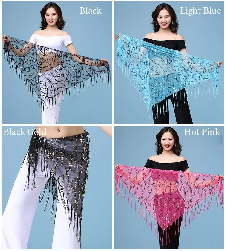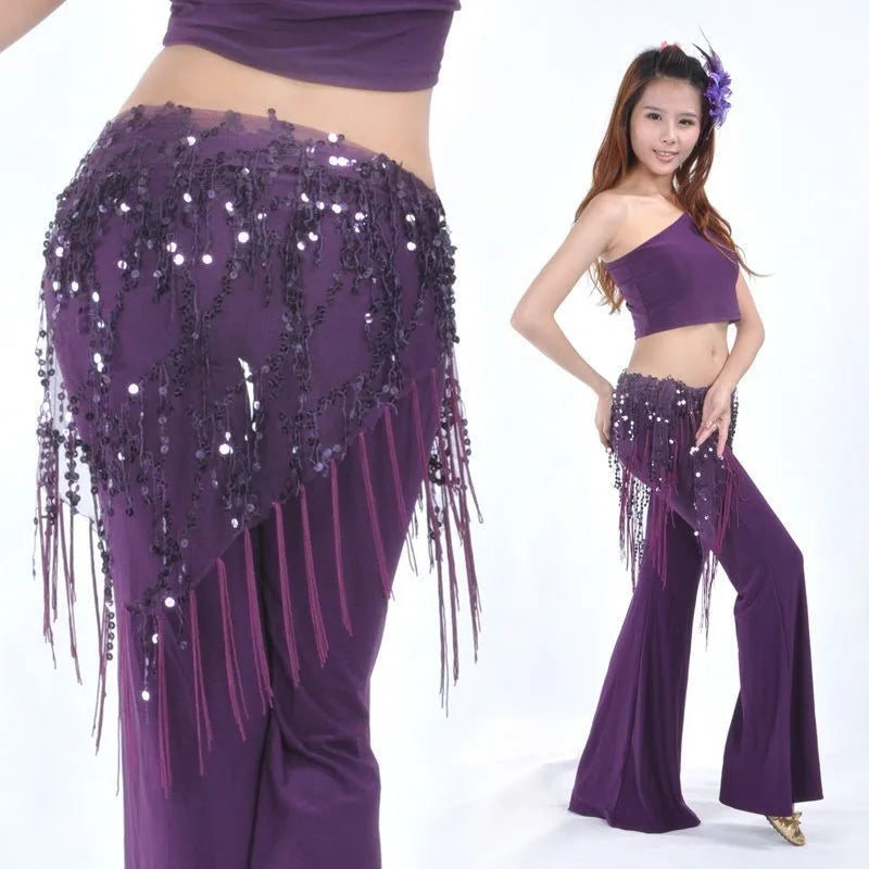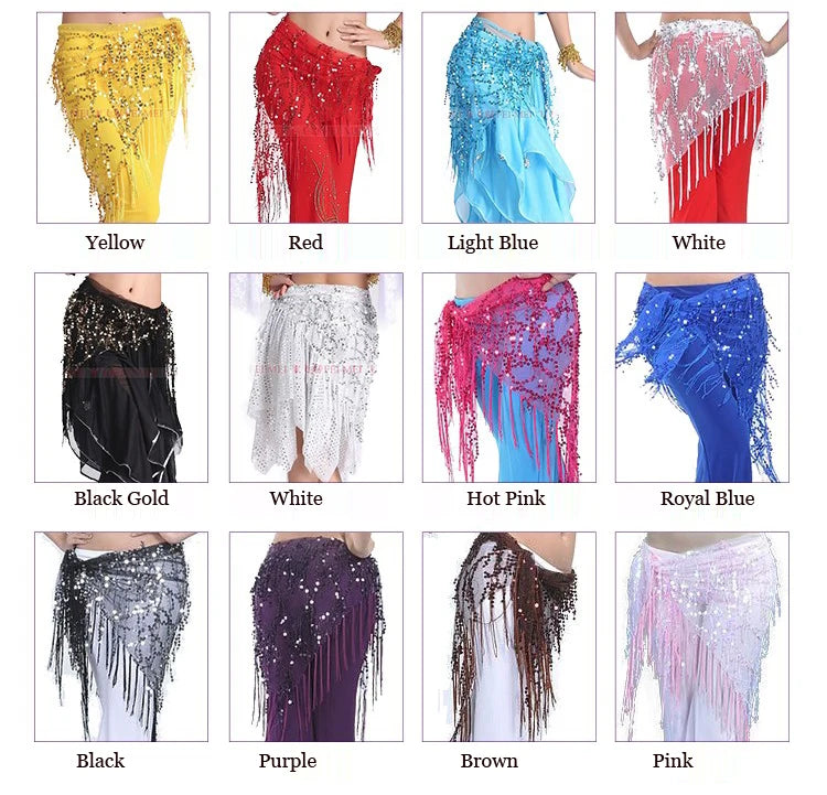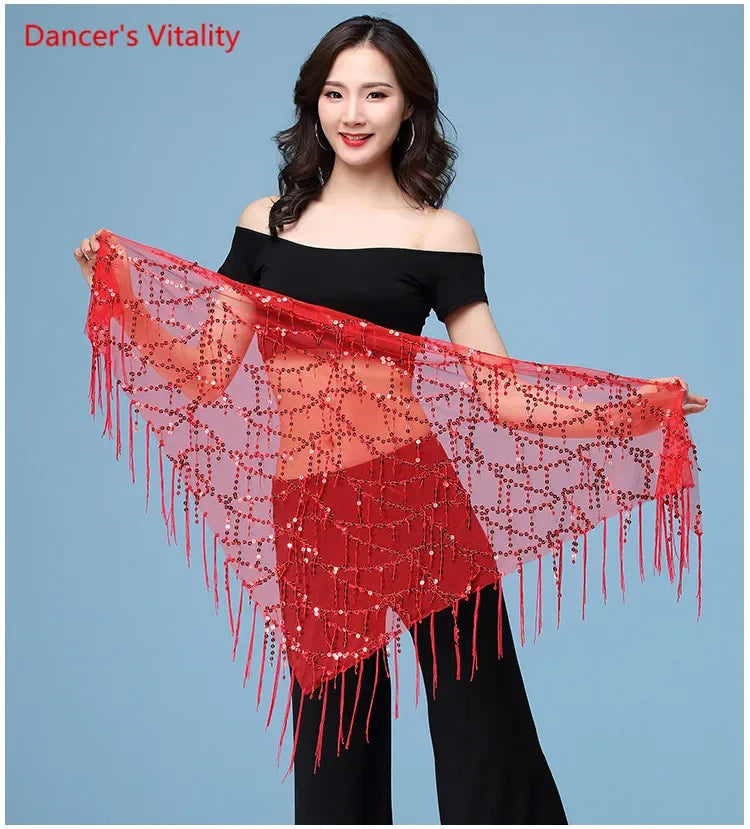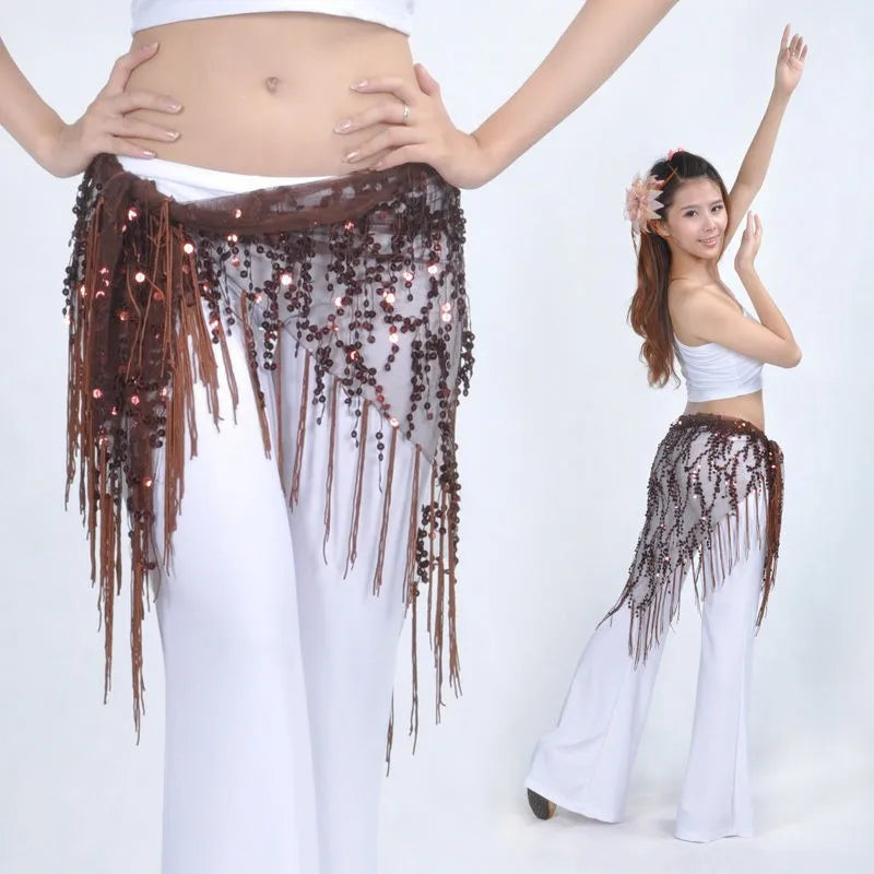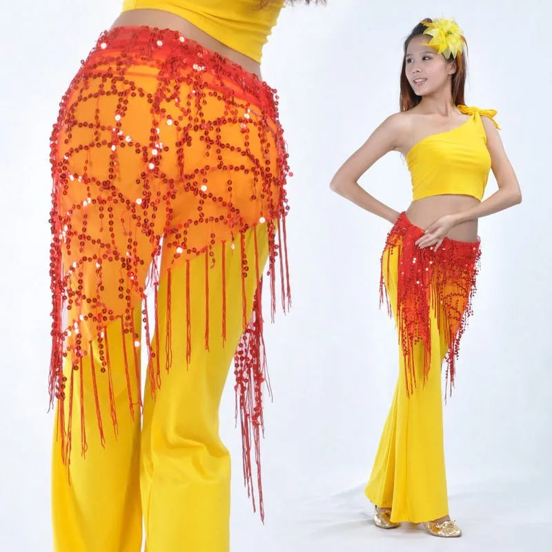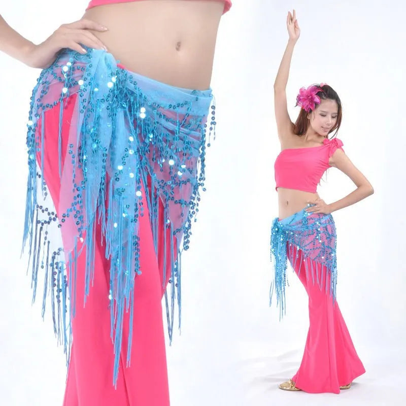Belly Dance Sequin Hip Scarf Skirt for Women - Elegant Triangle Belt Performance Practice Clothing