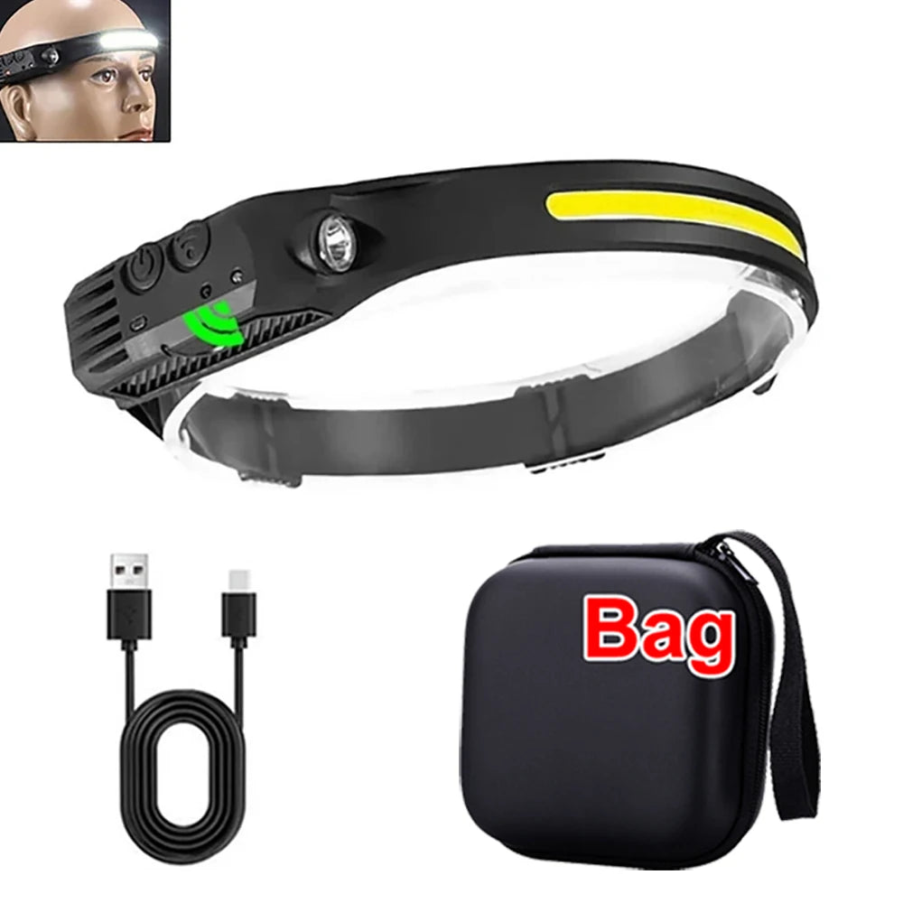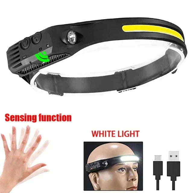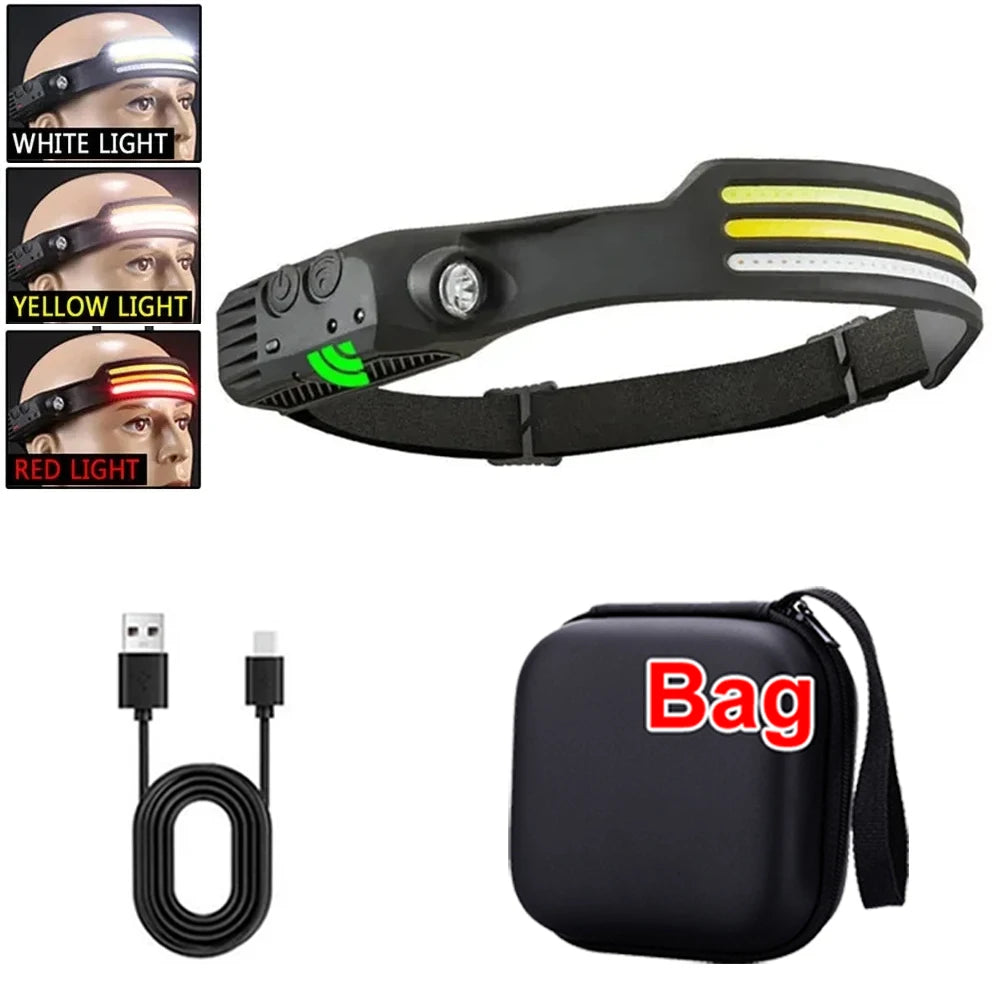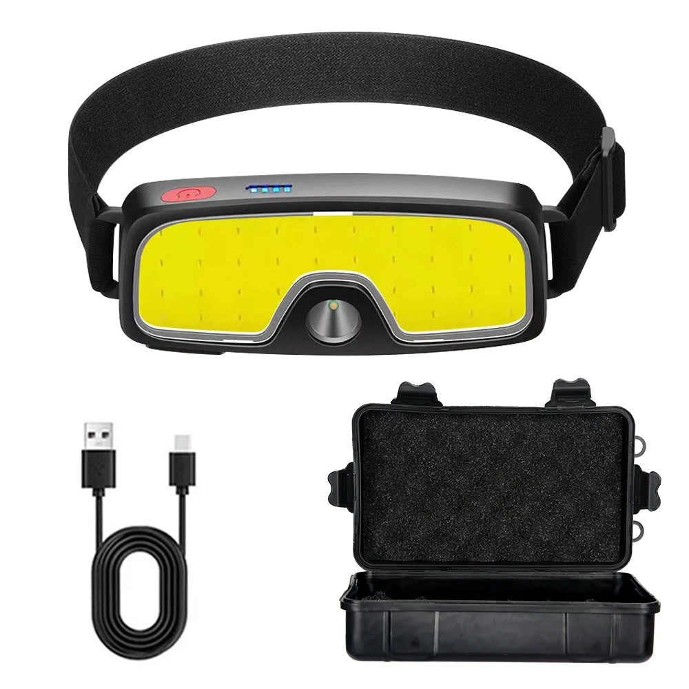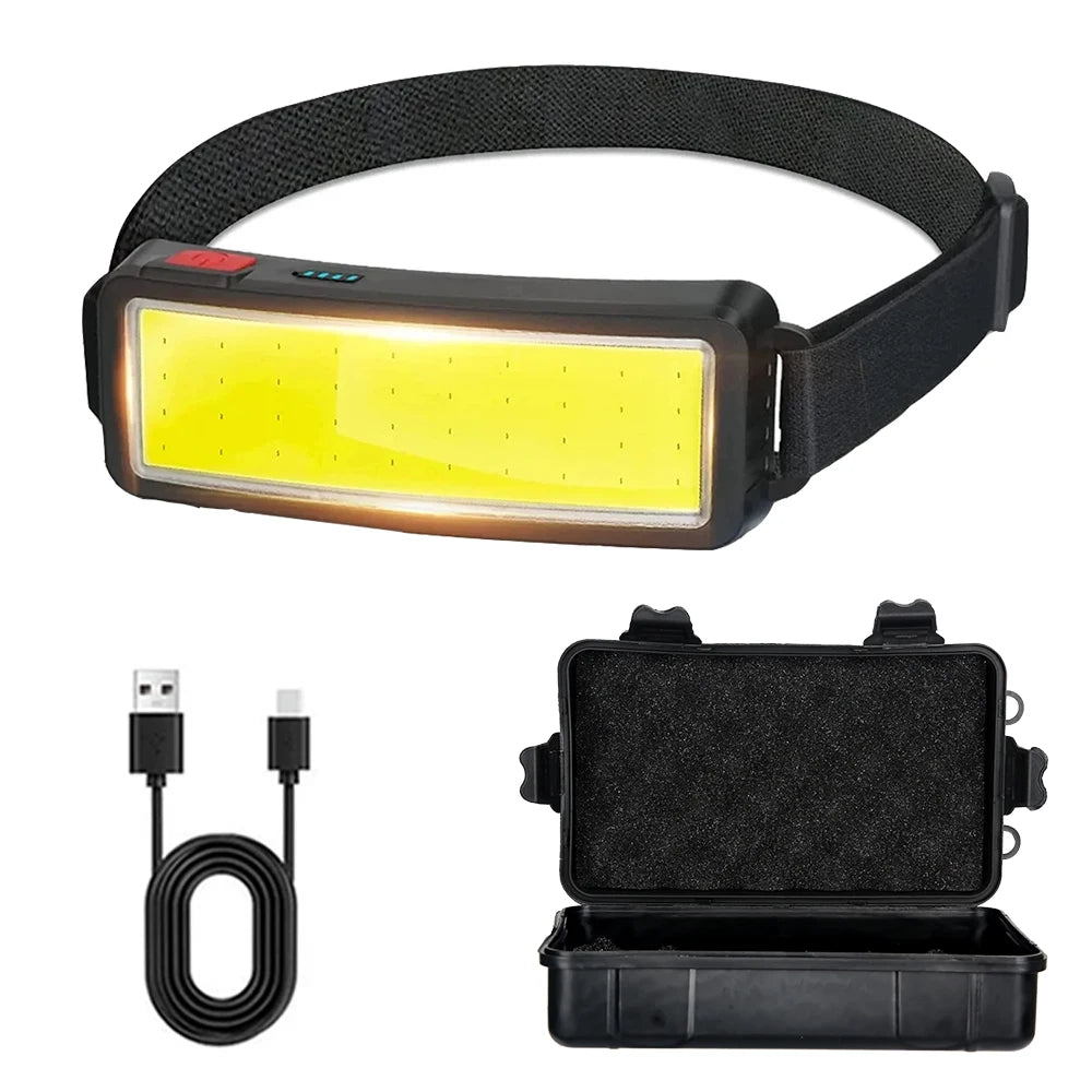 COB LED Rechargeable Headlamp, 3 Modes, USB Charging, Outdoor Camping & Fishing Emergency Light