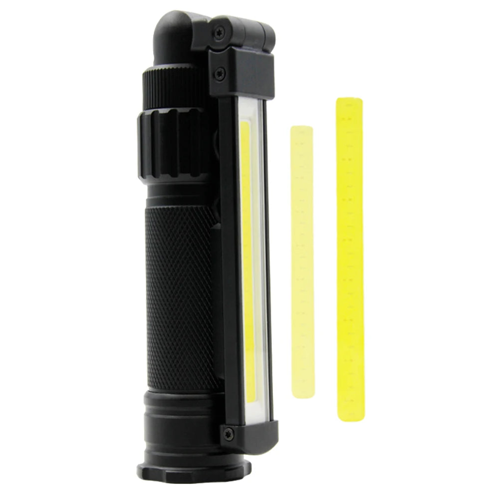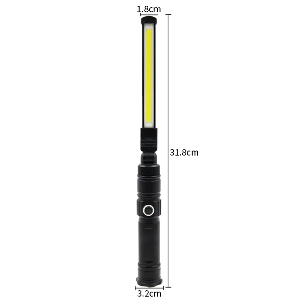 The light features a powerful magnet for hands-free use and a 360-degree folding design, allowing for flexible positioning and transportation. It’s powered by a changeable 18650 battery, making it easy to replace and recharge. The included USB charger ensures you always have power when you need it.