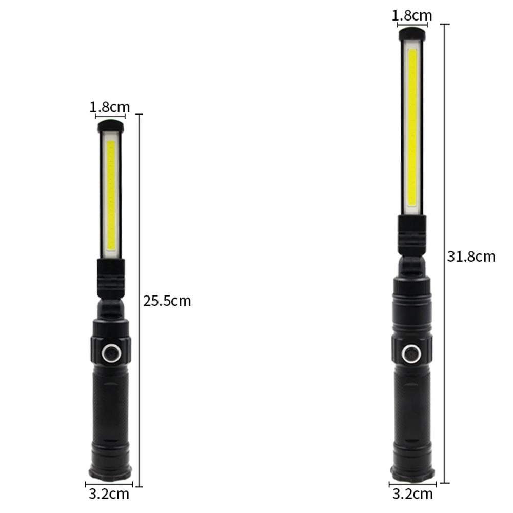COB XPE LED Camping Flashlight 18650 USB Work Light 360° Folding Magnetic Lamp with SOS Strobe Red