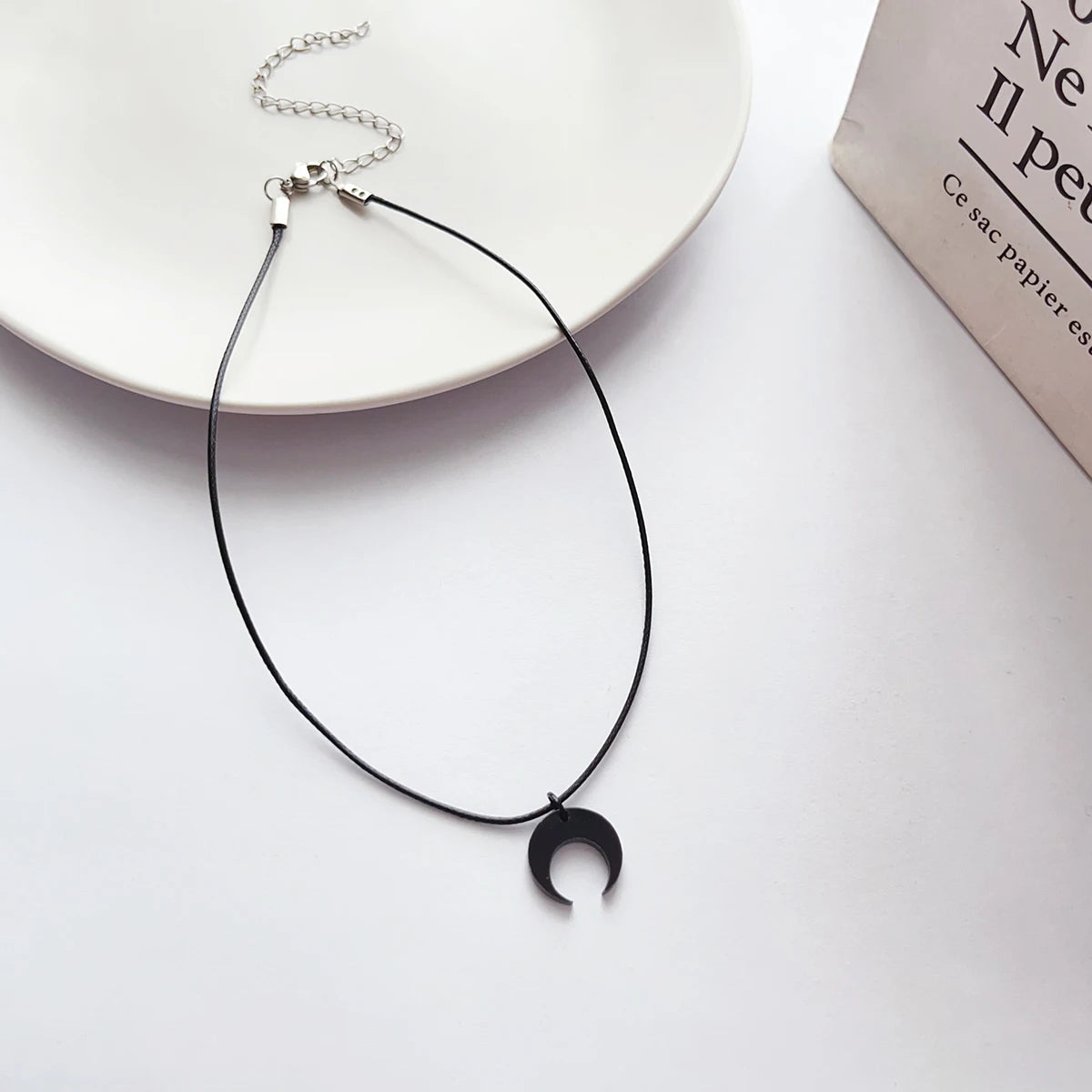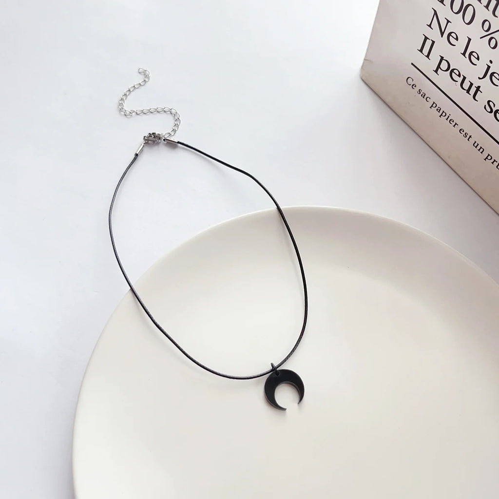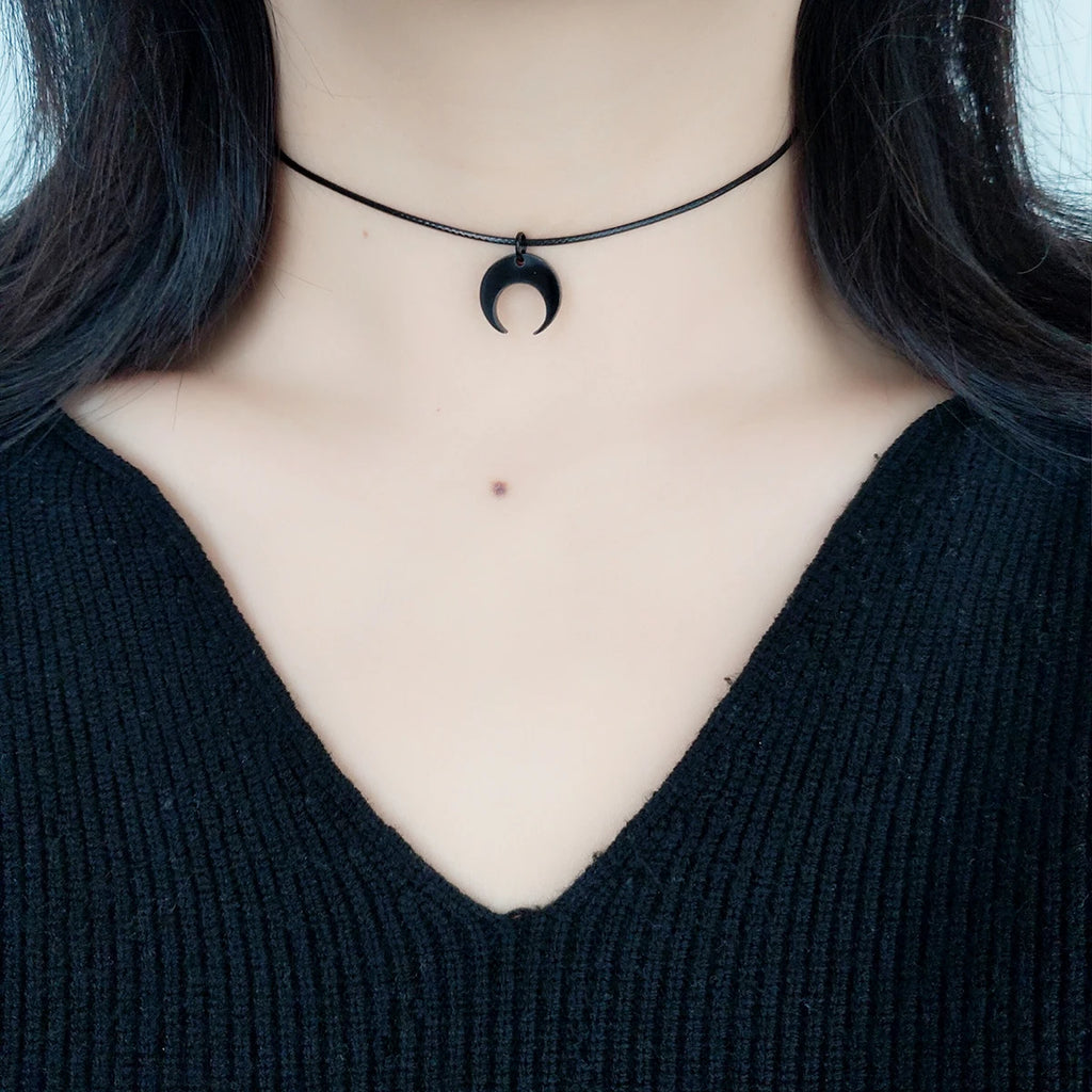 Dark Style Cute Black Moon Crescent Pendant Choker Necklace for Women Accessories