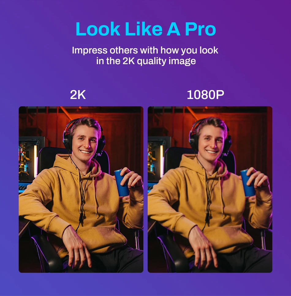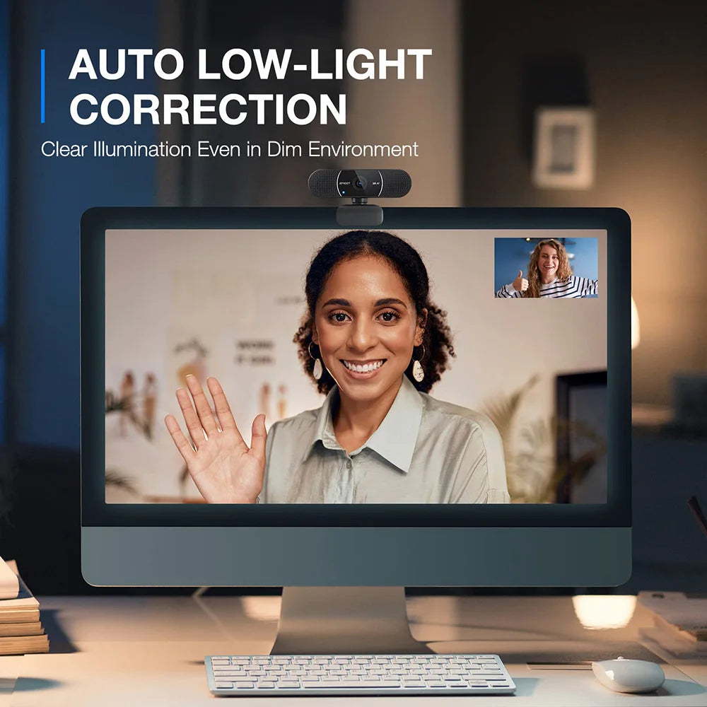 Experience exceptional video quality with the EMEET C960 2K Webcam, designed for business professionals seeking superior performance. With its 2K resolution at 30fps, you'll enjoy crisp imagery and vivid colors, perfect for presentations and video conferences. The webcam features automatic low-light correction, ensuring clear visuals even in dim environments, and fast autofocus powered by PDAF technology, allowing you to start meetings instantly.